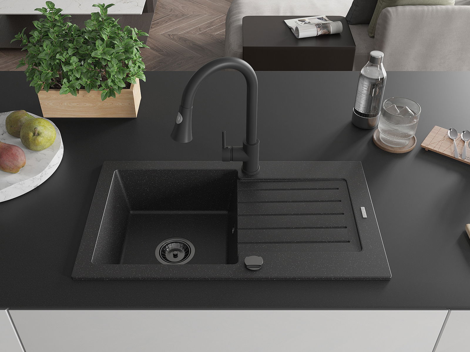 Mexen Pablo granit-Ëënnerspull mat enger Schoss mat a Kichebatterie Elia, schwaarz/sëlwer metalleschen Et
