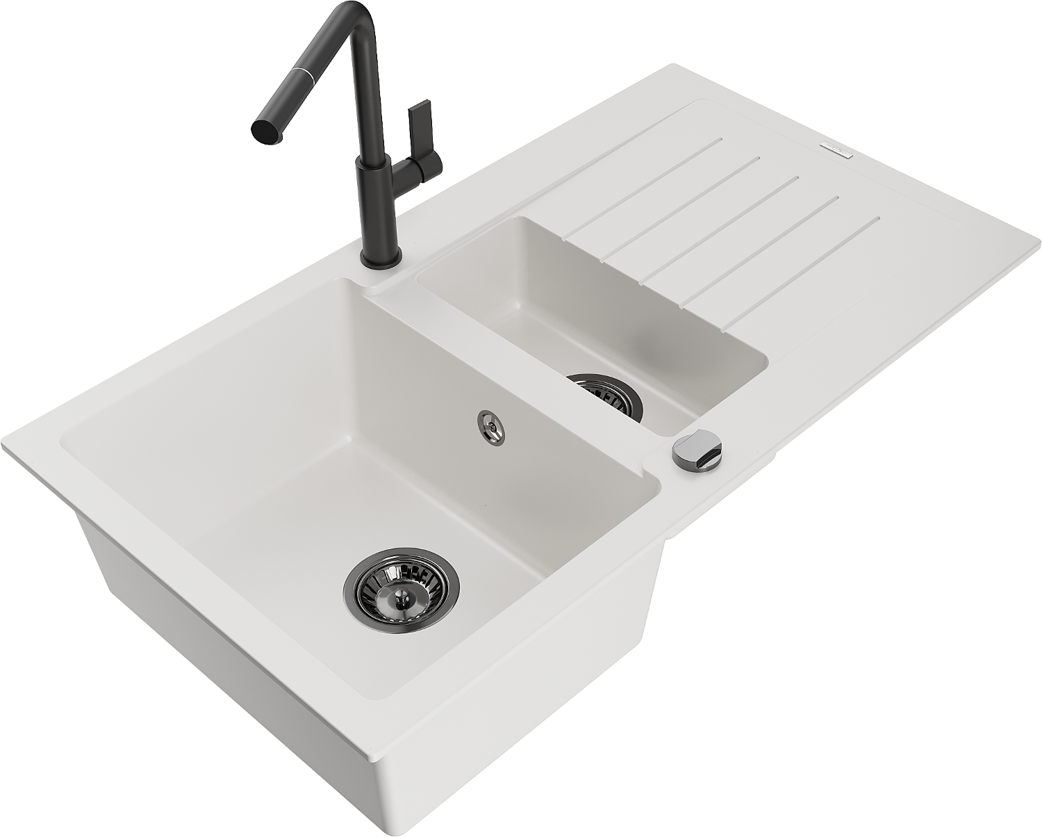Den Spullsteen huet 2 virberäitet Lächer mat engem Duerchmiesser vun 35 mm, déi selbststänneg ausgeschloen kënne ginn. Se kënne fir d'Montage vun engem Flëssegkeetsspender benotzt ginn, deen d'Präsenz vu Plastikfläschen an der Kichen eliminéiert an hir en elegant Finish gëtt.