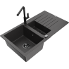 Den Ëmwäschbecken ass aus héichwäertege Granit gemaach. Et stellt eng elegant awer virun allem praktesch Ergänzung fir all Kichen duer, onofhängeg vun hirem Stil. Déi héich Qualitéit an Haltbarkeet vum Granit suergen fir méi järelaang Benotzung.