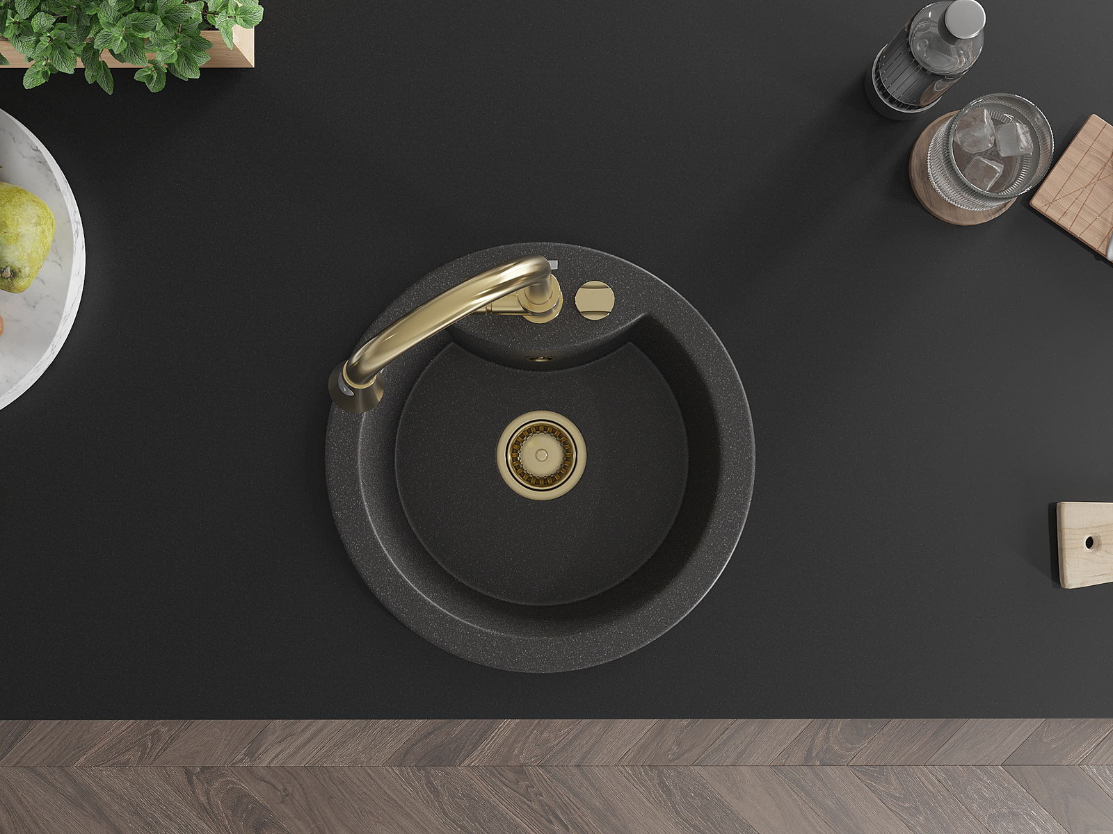 Mexen Diego Granit-Eenzelweik mat Kichenkran Elia, schwaarz sprëtzen - 6512-76-670101-50