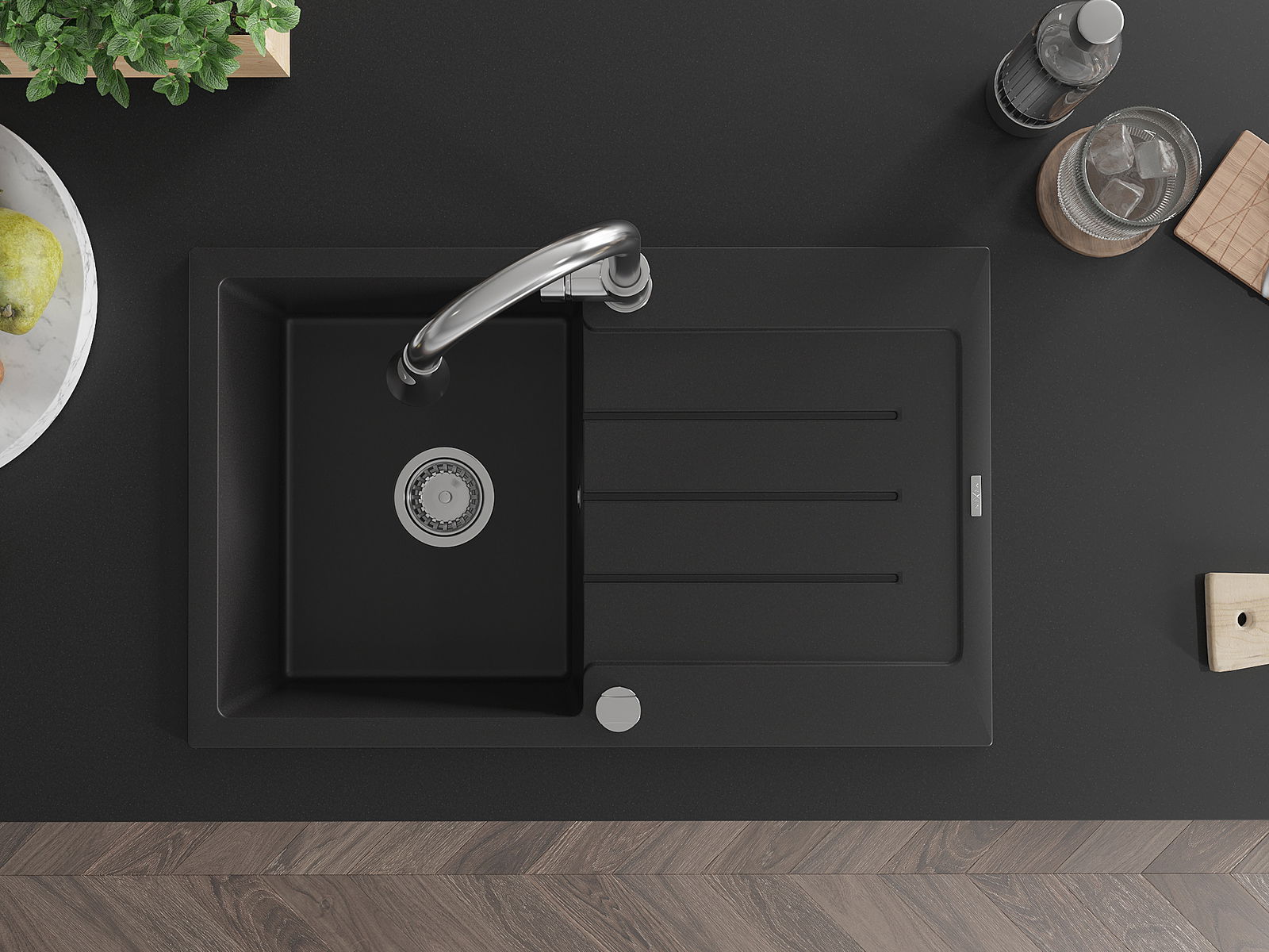 Mexen Bruno Granitspullsteng mat enger Schëff a Kichenkran Elia, schwaarz - 6513-77-670101-00
