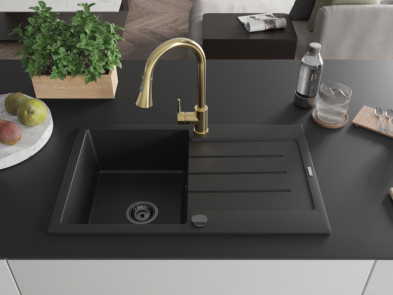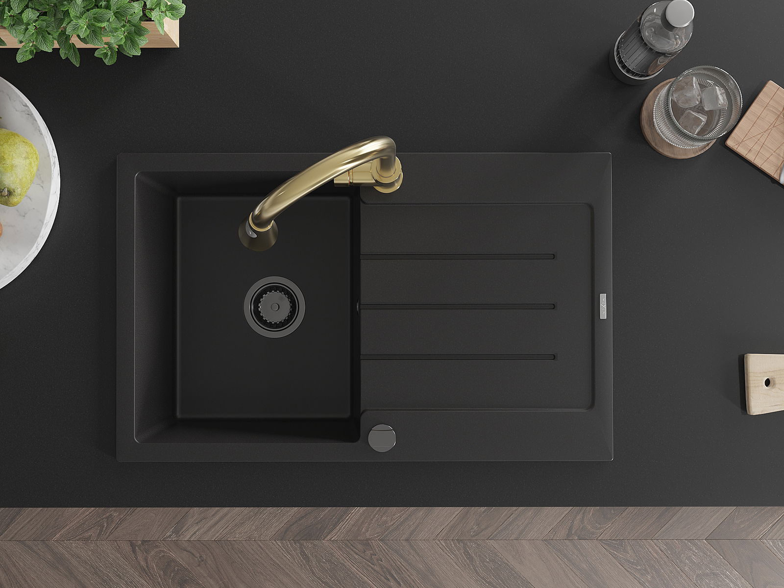Mexen Bruno Granitspullut mat enger Kammer mat Oflaaf an enger Kichenkrunn Elia, schwaarz - 6513-77-670101-50-B