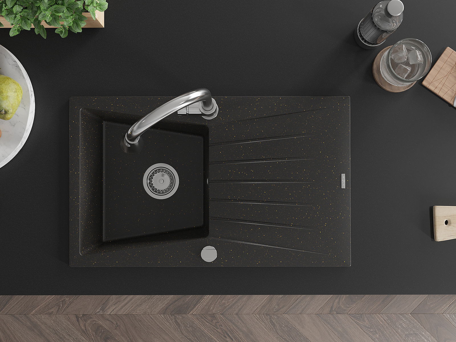 Mexen Cesar Granitspullt 1-Kummer mat Oflaaf an Kichenkrun Elia, schwaarz/gëllen Metallic - 6514-75-670101-00