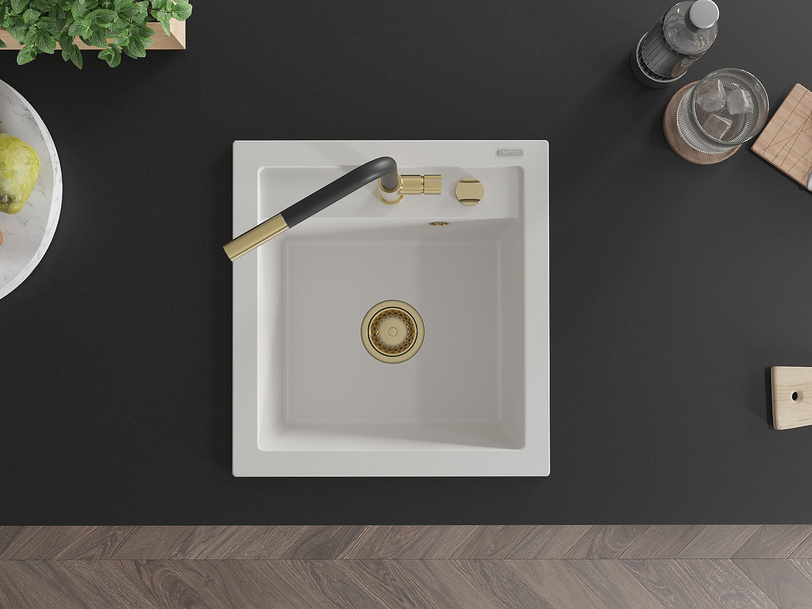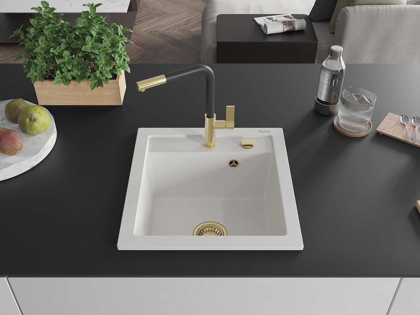 Mexen Vito Granitspullstopp mat enger Kichenkraan Flora, wäiss - 6503-20-670401-57-G