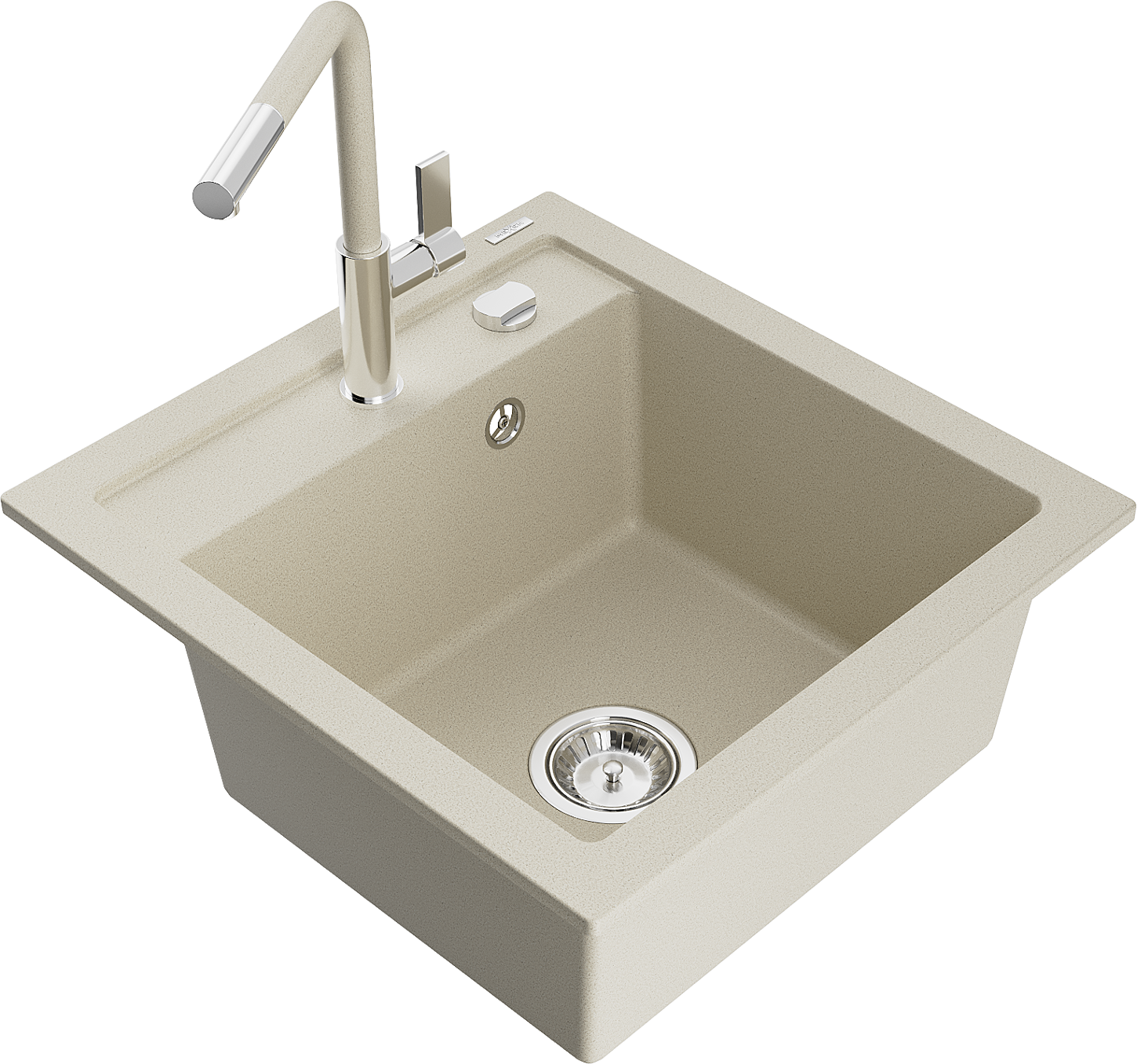 D'Uewerfläch vum Spullbecken ass ganz gutt gehärt, et ass aussergewéinlech resistent géint mechanesch Schied a Kratzer. De bestännege Materialausféierung erlaabt Iech d'gutt Ausgesinn vum Spullbecken fir vill Joeren ze genéissen.