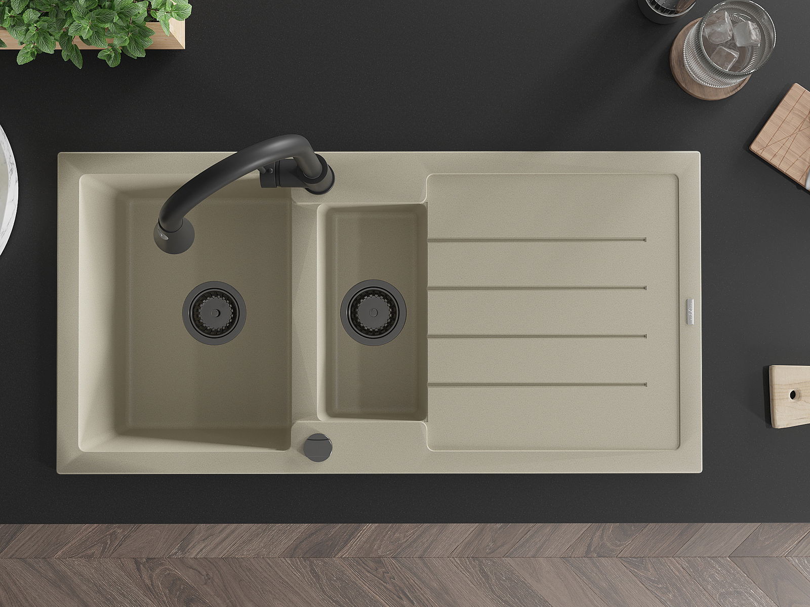 Den Ëmwäschbecken ass aus héichwäertege Granit gemaach. Et stellt eng elegant awer virun allem praktesch Ergänzung fir all Kichen duer, onofhängeg vun hirem Stil. Déi héich Qualitéit an Haltbarkeet vum Granit suergen fir méi järelaang Benotzung.