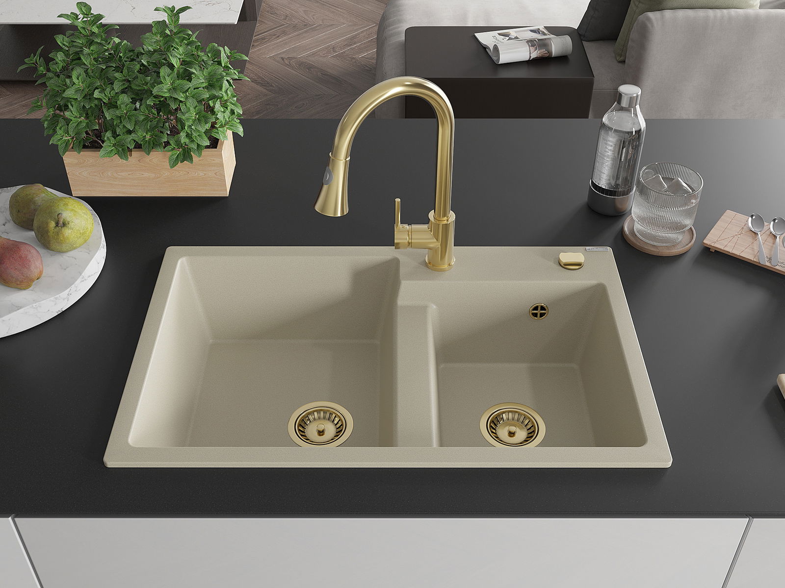 Mexen Tomas Granitë-Spullstee 2-Kummer mat Kichebatterie Elia, beige - 6516-69-670101-50