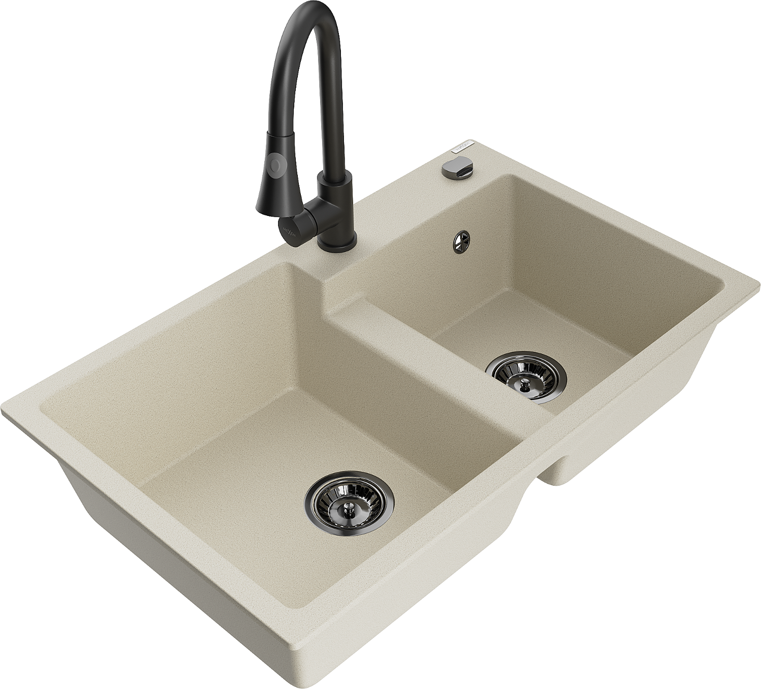 Mexen Tomas Granit-Spullsteen mat 2 Schuelten mat Kichenbatterie Elia, beige - 6516-69-670101-70