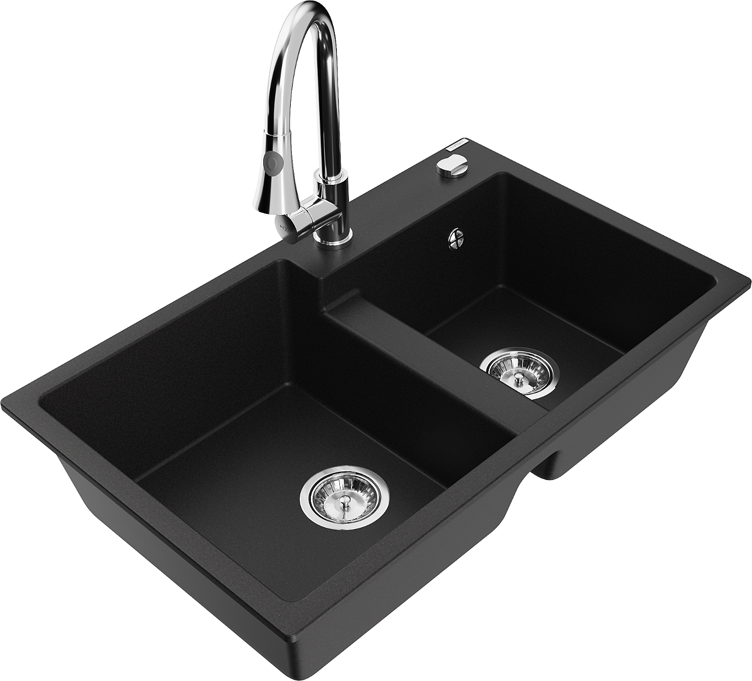 Mexen Tomas Granitspullt 2-Kammer mat Kichenkran Elia, schwaarz - 6516-77-670101-00