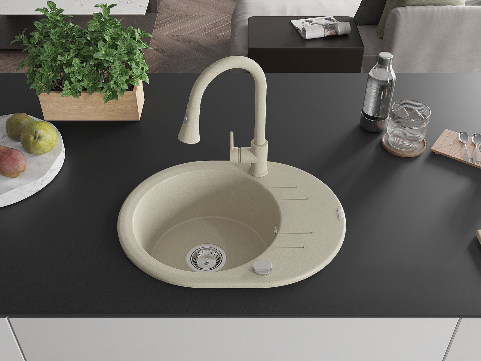 Mexen Kevin Granit-Spullut 1-Kummer mat Oflaaf an Kichenkran Elia, beige - 6517-69-670101-69
