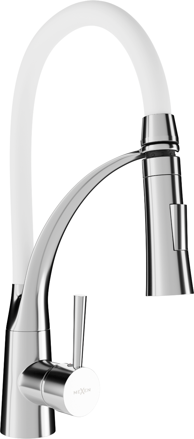 Batterien mat enger Silikon-Auslaf an enger Messingstëtzung sinn eng praktesch Léisung an der Kichen. Hir Flexibilitéit erlaabt eng 360° Rotatioun, wat definitiv méi einfach mécht d'Uewen ze spülen, de Spullbecken ze rengegen an e Vaas oder eng Kasseroll mat Waasser ze fëllen.