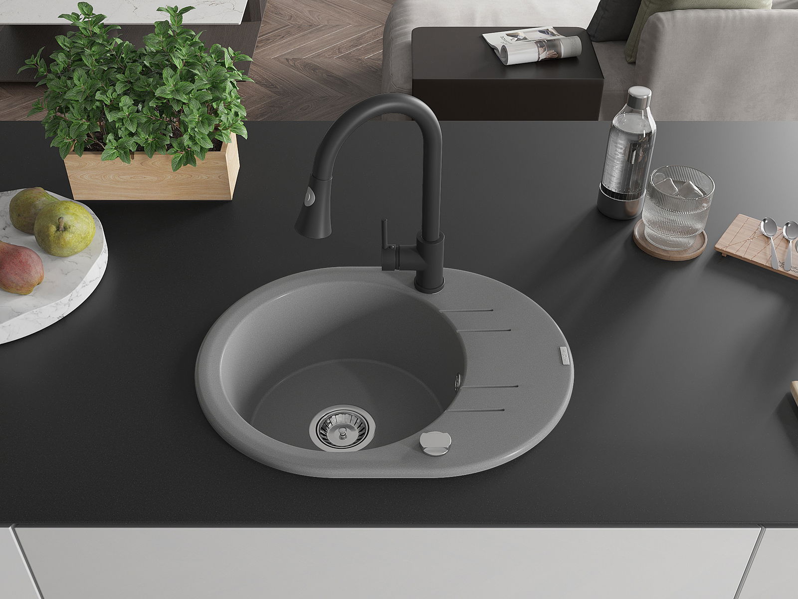 Mexen Kevin Granit-Spullmupp 1-Kummer mat Ofdrëpsbereich a Kichenbatterie Elia, gro - 6517-71-670101-70