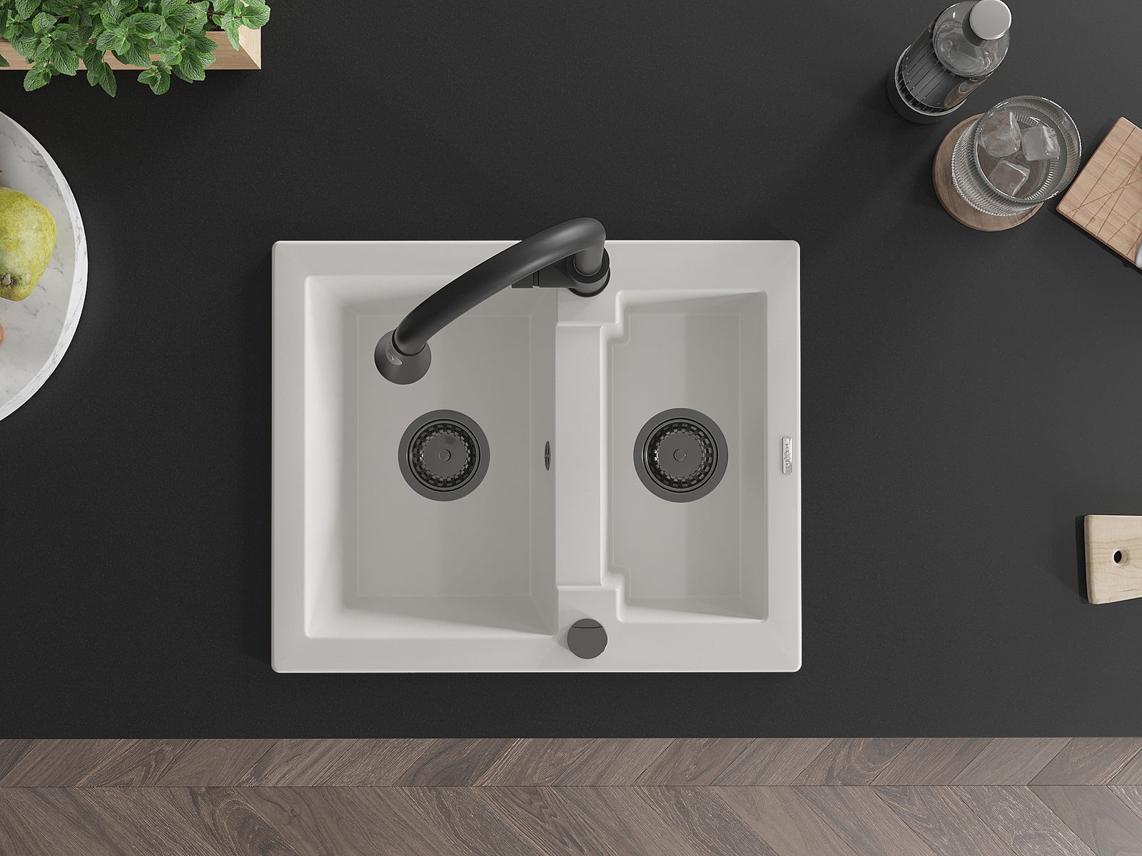 Den Ëmwäschbecken ass aus héichwäertege Granit gemaach. Et stellt eng elegant awer virun allem praktesch Ergänzung fir all Kichen duer, onofhängeg vun hirem Stil. Déi héich Qualitéit an Haltbarkeet vum Granit suergen fir méi järelaang Benotzung.