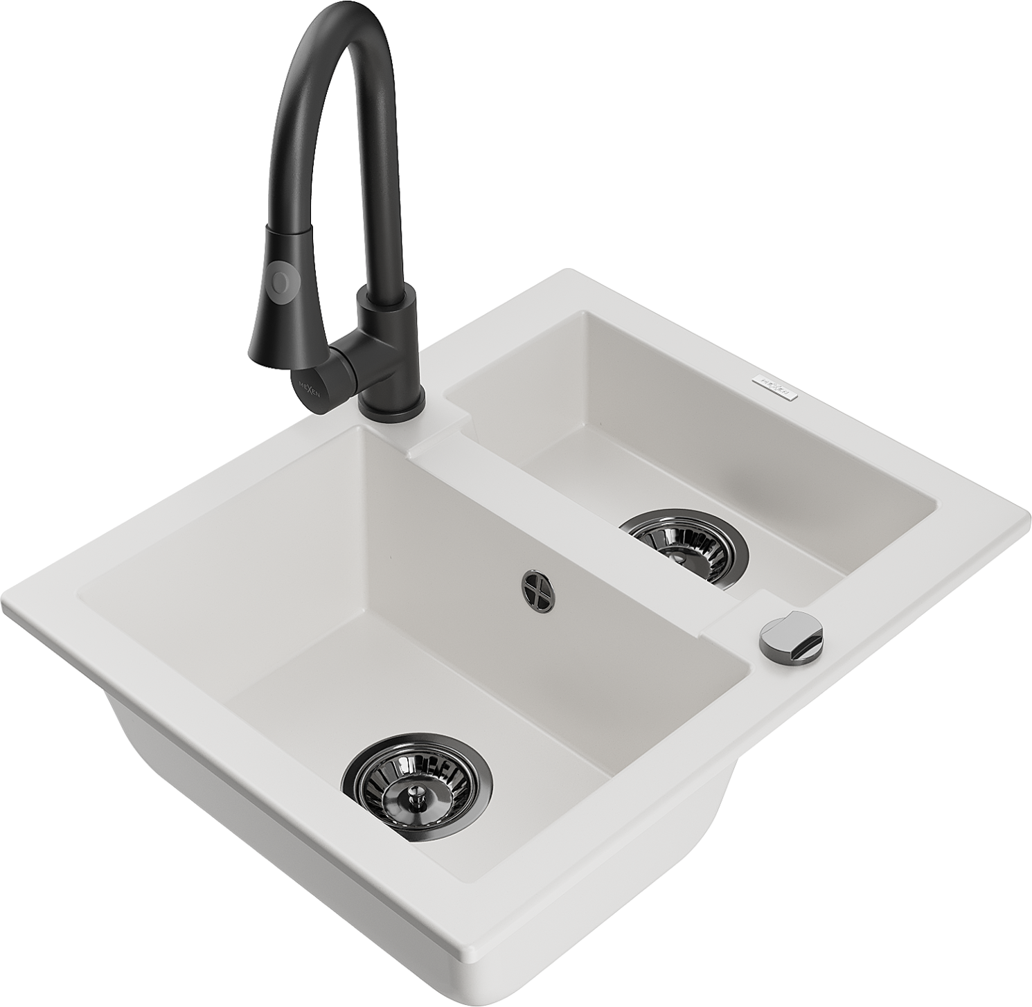 Mexen Carlos Granitspulltoilette mat 1,5 Sektiounen mat Küchenkran Elia, wäiss - 6518-20-670101-70