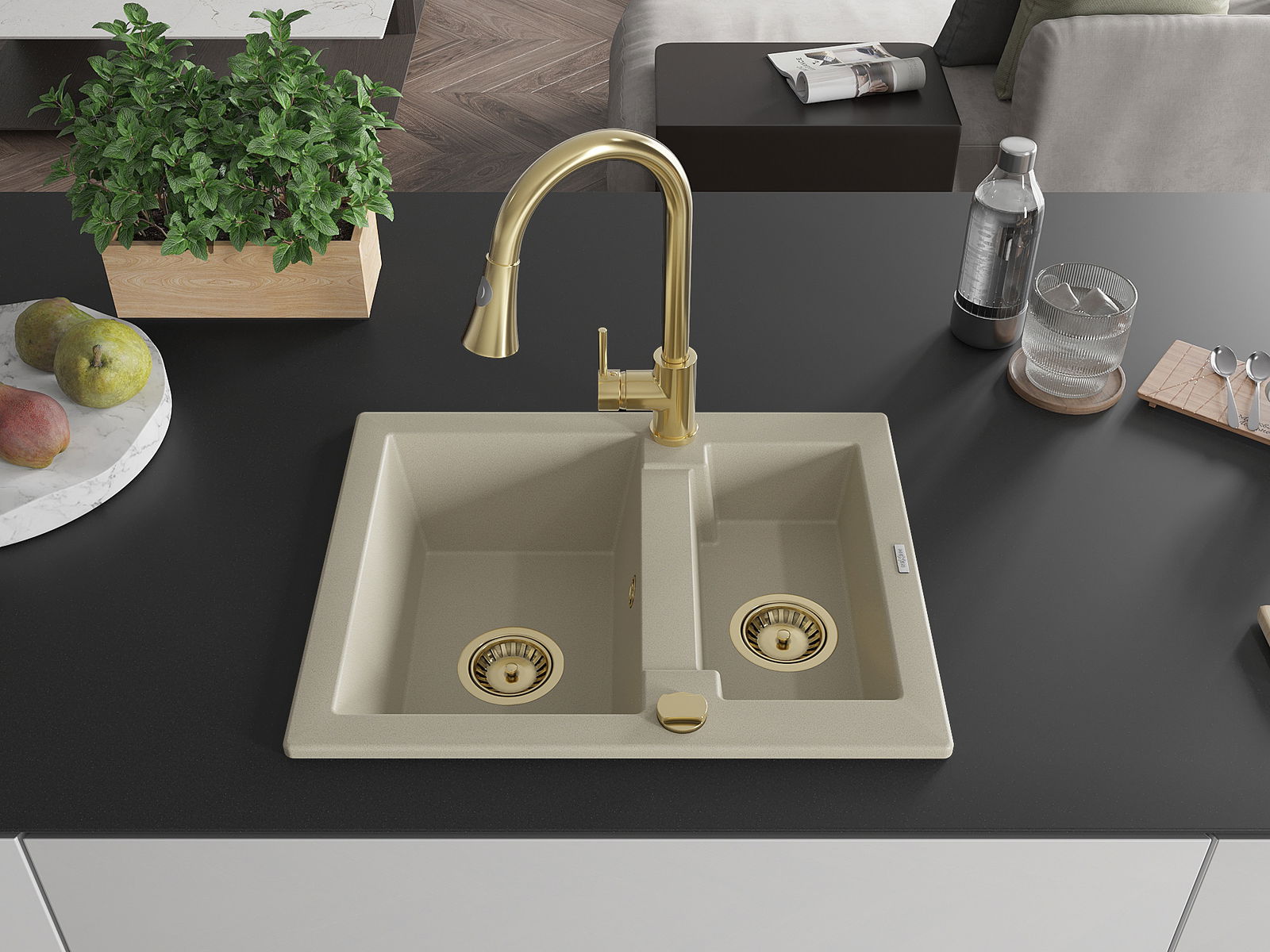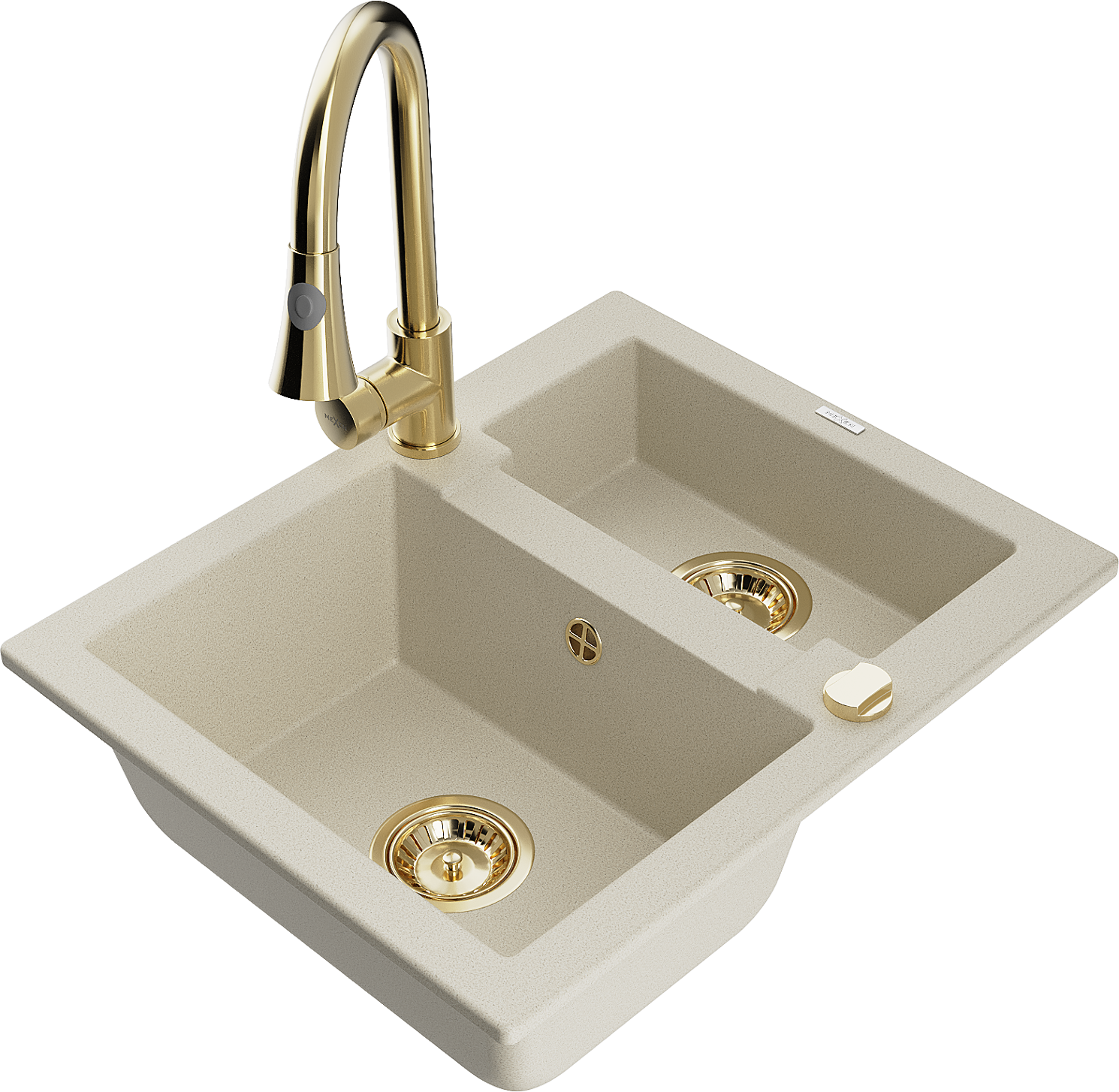 Mexen Carlos granitëchesch Spullsteen 1,5-Sektioun mat Kichenkran Elia, beige - 6518-69-670101-50