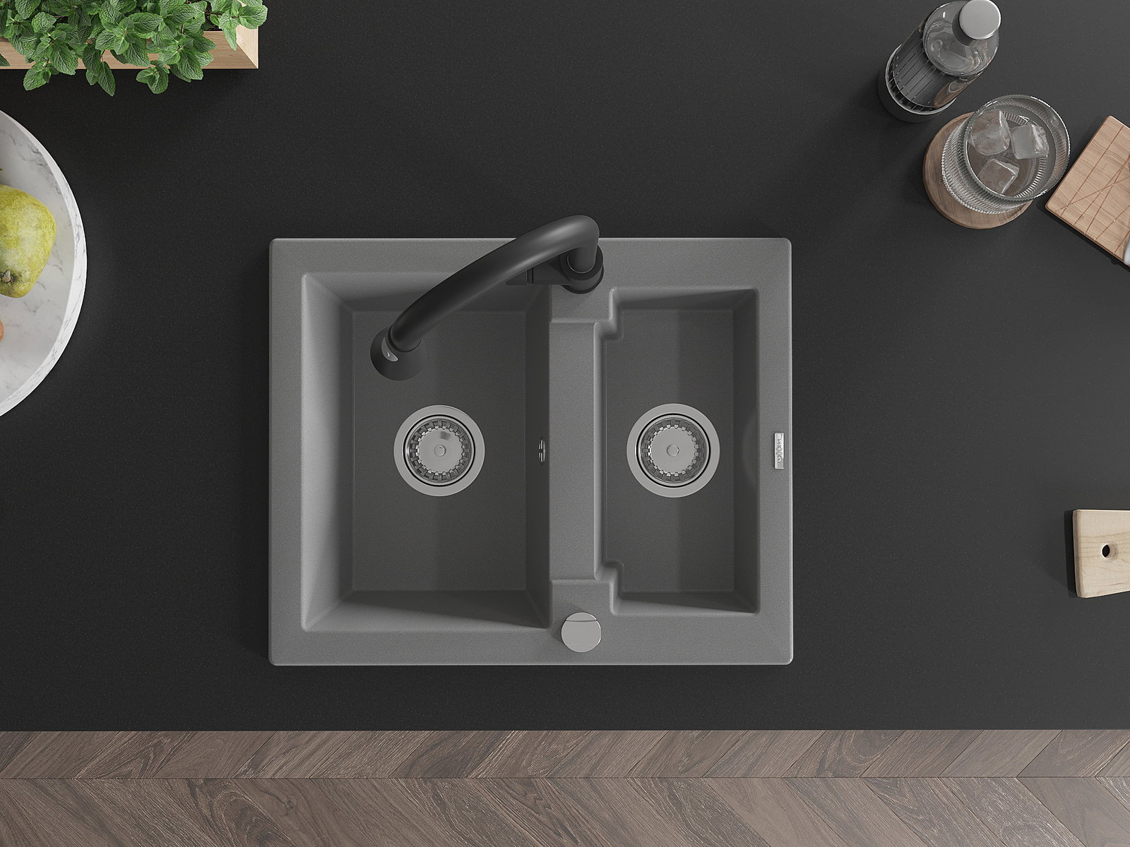 Den Ëmwäschbecken ass aus héichwäertege Granit gemaach. Et stellt eng elegant awer virun allem praktesch Ergänzung fir all Kichen duer, onofhängeg vun hirem Stil. Déi héich Qualitéit an Haltbarkeet vum Granit suergen fir méi järelaang Benotzung.