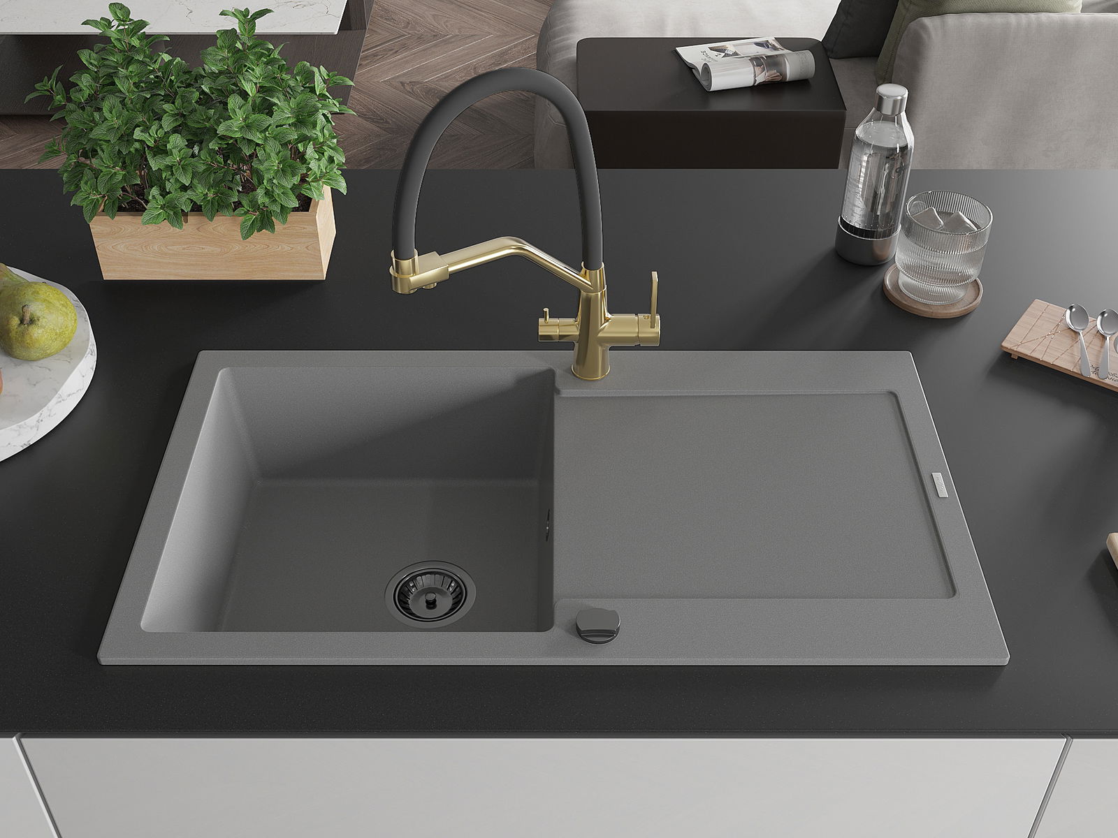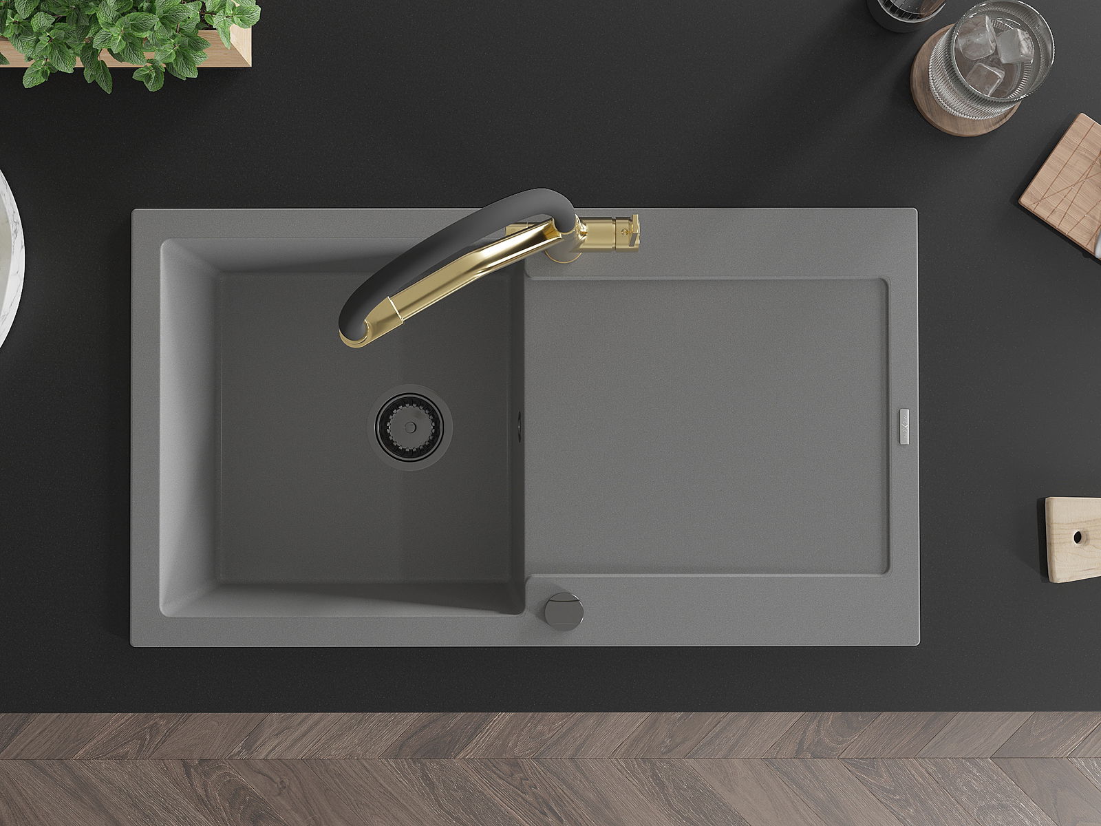 Mexen Leo Granitt-Spullsteen mat enger Kummer an Ofdrock an Kichenduch Duo, gro - 6501-71-671701-57-B