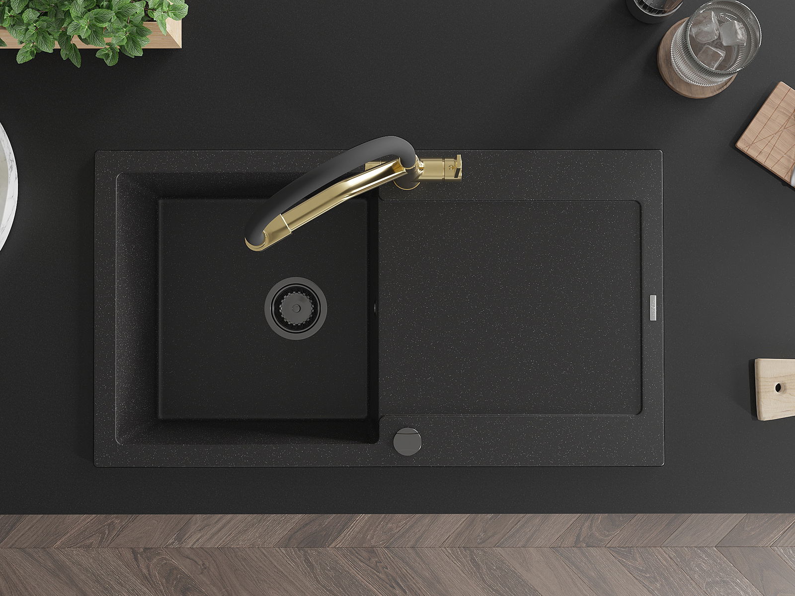Den Ëmwäschbecken ass aus héichwäertege Granit gemaach. Et stellt eng elegant awer virun allem praktesch Ergänzung fir all Kichen duer, onofhängeg vun hirem Stil. Déi héich Qualitéit an Haltbarkeet vum Granit suergen fir méi järelaang Benotzung.