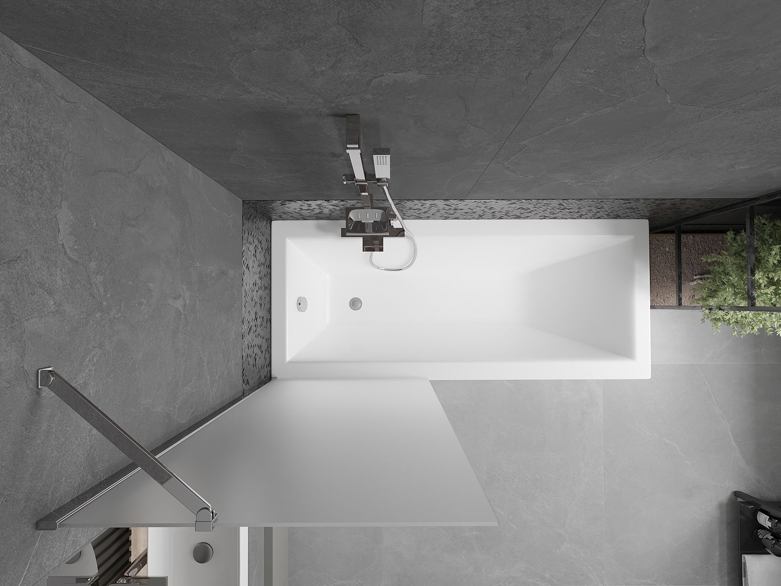 Mexen Next Badezëmmer-Paravent 1-flügelech 70 x 150 cm, Schnéi, Chrom - 895-070-000-00-30-01