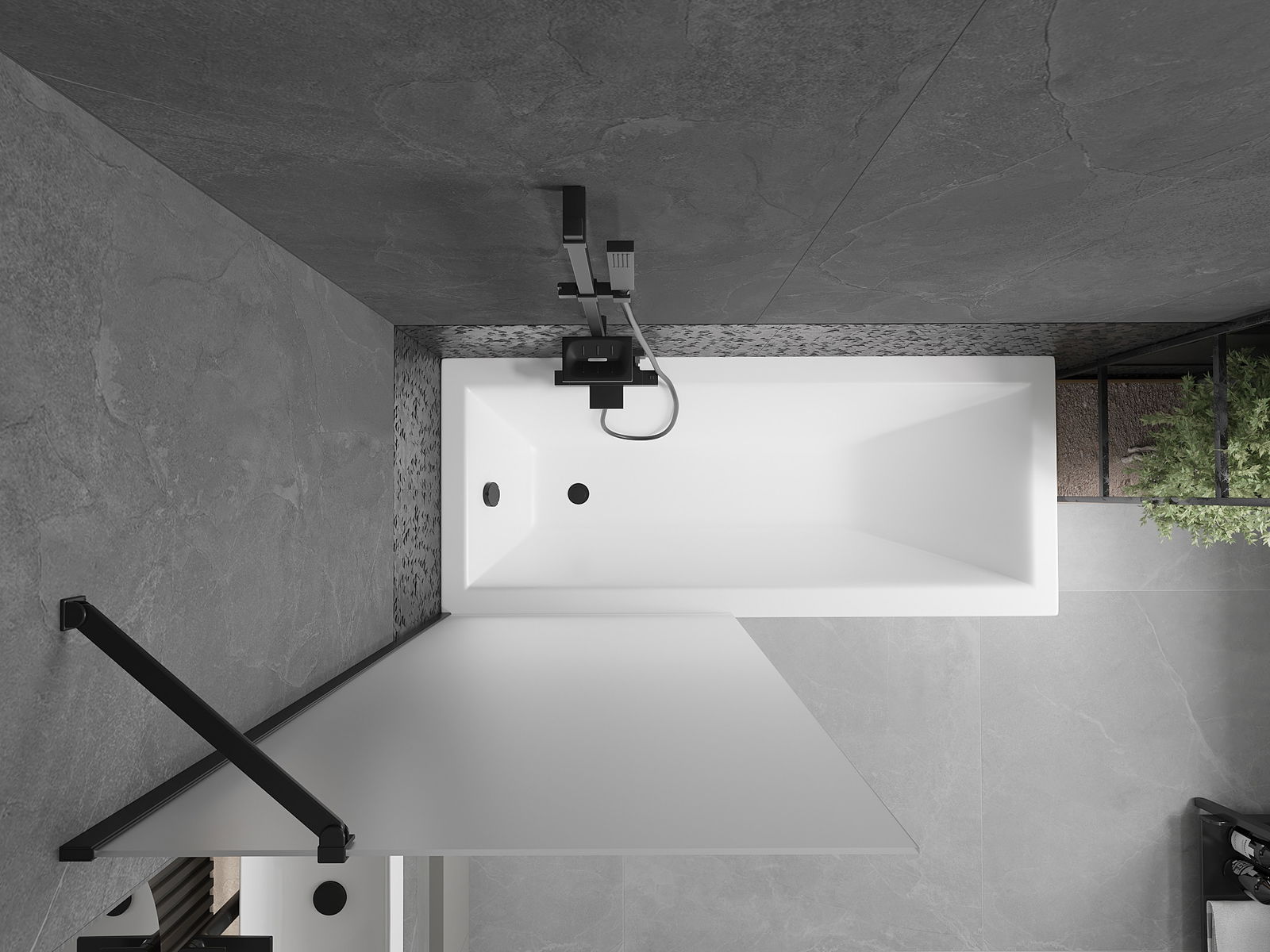 Dank dem universellen Montagesystem kann de Paravent je no Bedierfness op der rietser oder lénkser Säit montéiert ginn. Sou kanns de eng Dusch plangen, déi op de Raum vun der Buedzëmmer ugepasst ass.