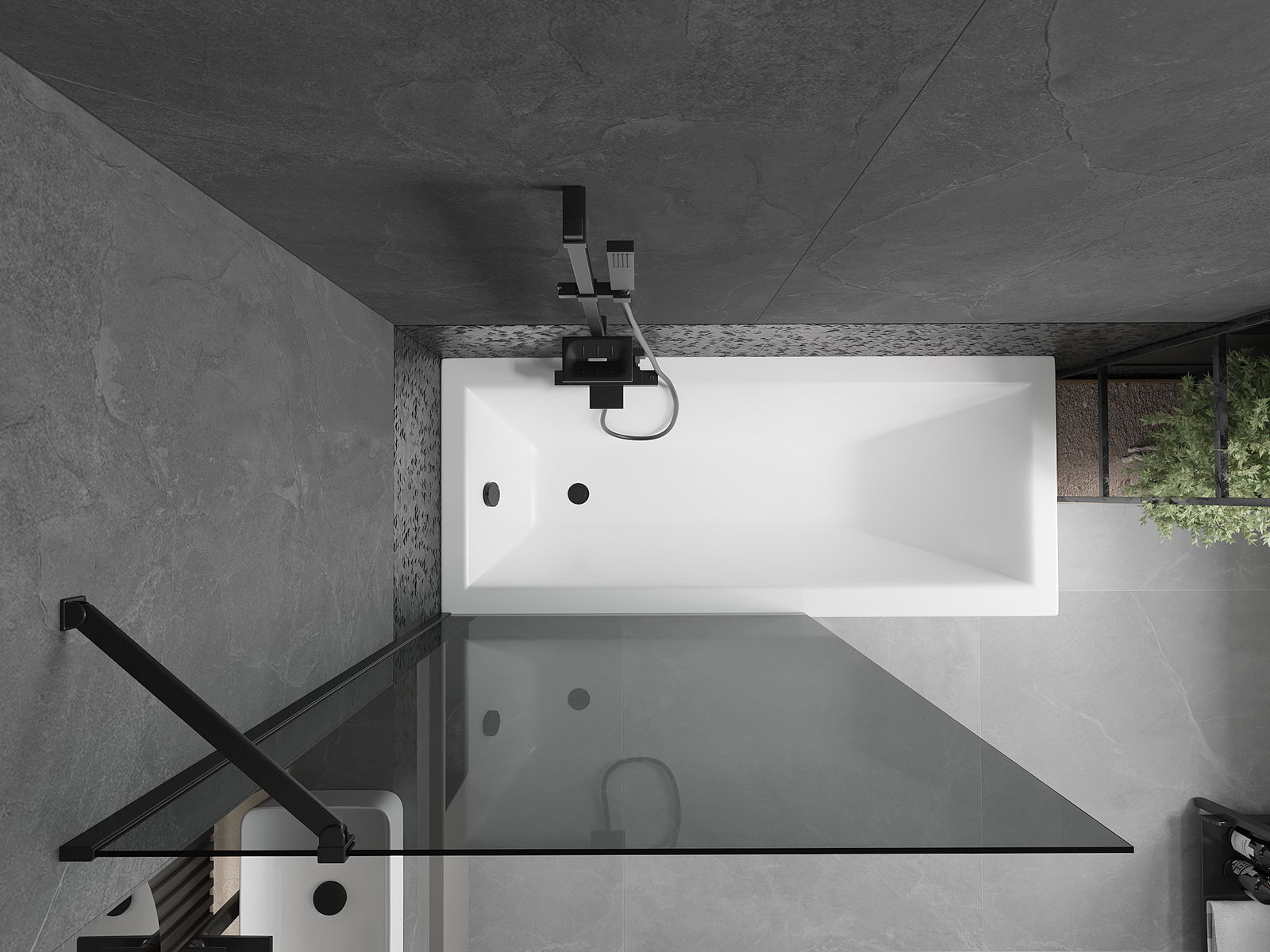 Dank dem universellen Montagesystem kann de Paravent je no Bedierfness op der rietser oder lénkser Säit montéiert ginn. Sou kanns de eng Dusch plangen, déi op de Raum vun der Buedzëmmer ugepasst ass.