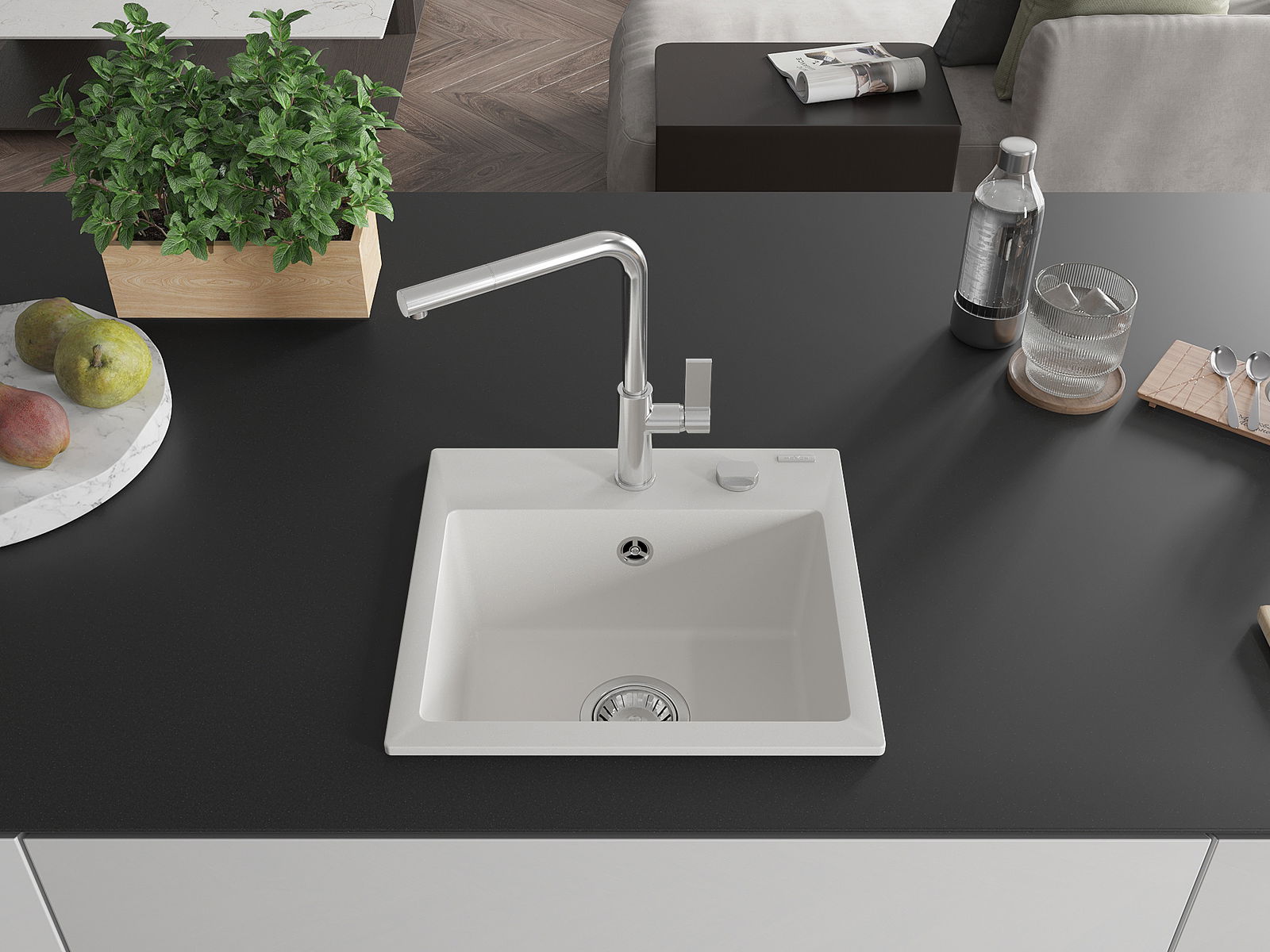 Mexen Milo Granit Spullsteen eenkammer mat Kichenkran Flora, wäiss - 6505-20-670401-00