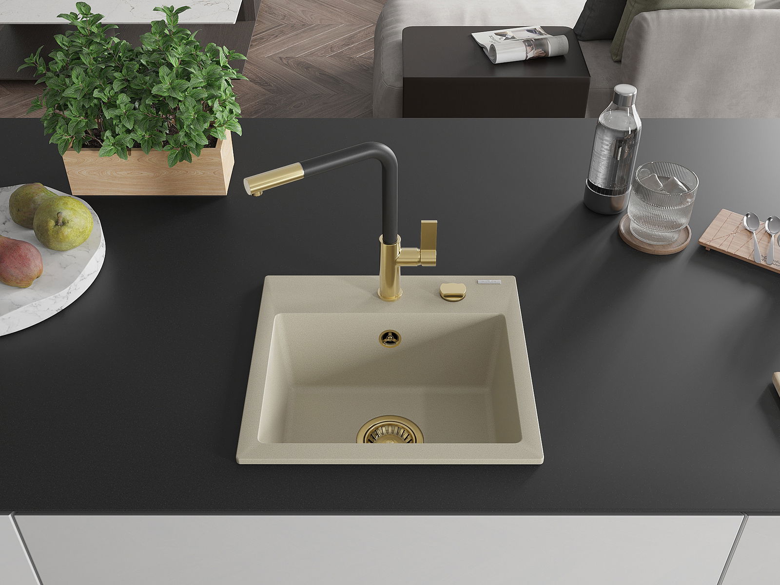 D'Uewerfläch vum Spullstee ass fleck- a verfärbungsresistent, wat se einfach ze botzen mécht an hir Faarf iwwer eng laang Zäit vum Gebrauch behalen léisst. Esthetesch an praktesch Ergänzung fir all Kichen.