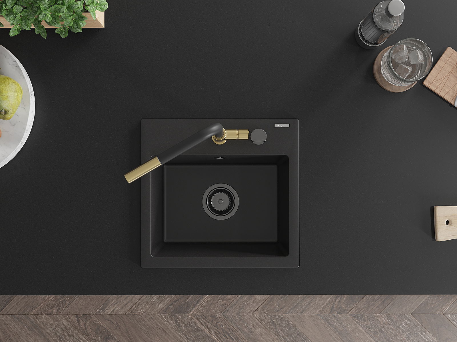 Mexen Milo Granitenspol 1-Komponenten mat Kichbatterie Flora, schwaarz - 6505-77-670401-57-B