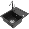 Mexen Enzo Granit-Spullsteen mat enger Kummer, mat Oflausplaz a Kichenbatterie Flora, schwaarz - 6506-77-670401-00