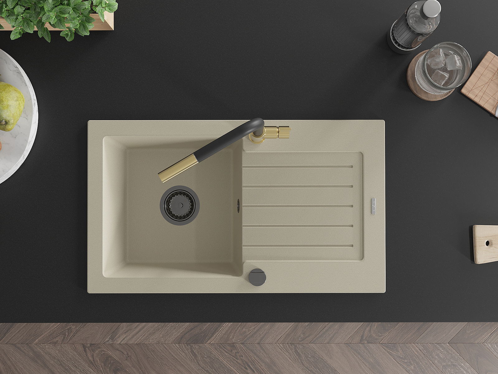 D'Uewerfläch vum Spullstee ass fleck- a verfärbungsresistent, wat se einfach ze botzen mécht an hir Faarf iwwer eng laang Zäit vum Gebrauch behalen léisst. Esthetesch an praktesch Ergänzung fir all Kichen.