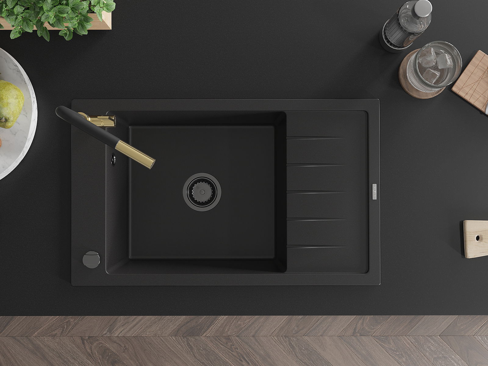 Mexen Elias Granit-Spullsteen mat enger Schoss a Kichekraan Flora, schwaarz - 6511-77-670401-57-B