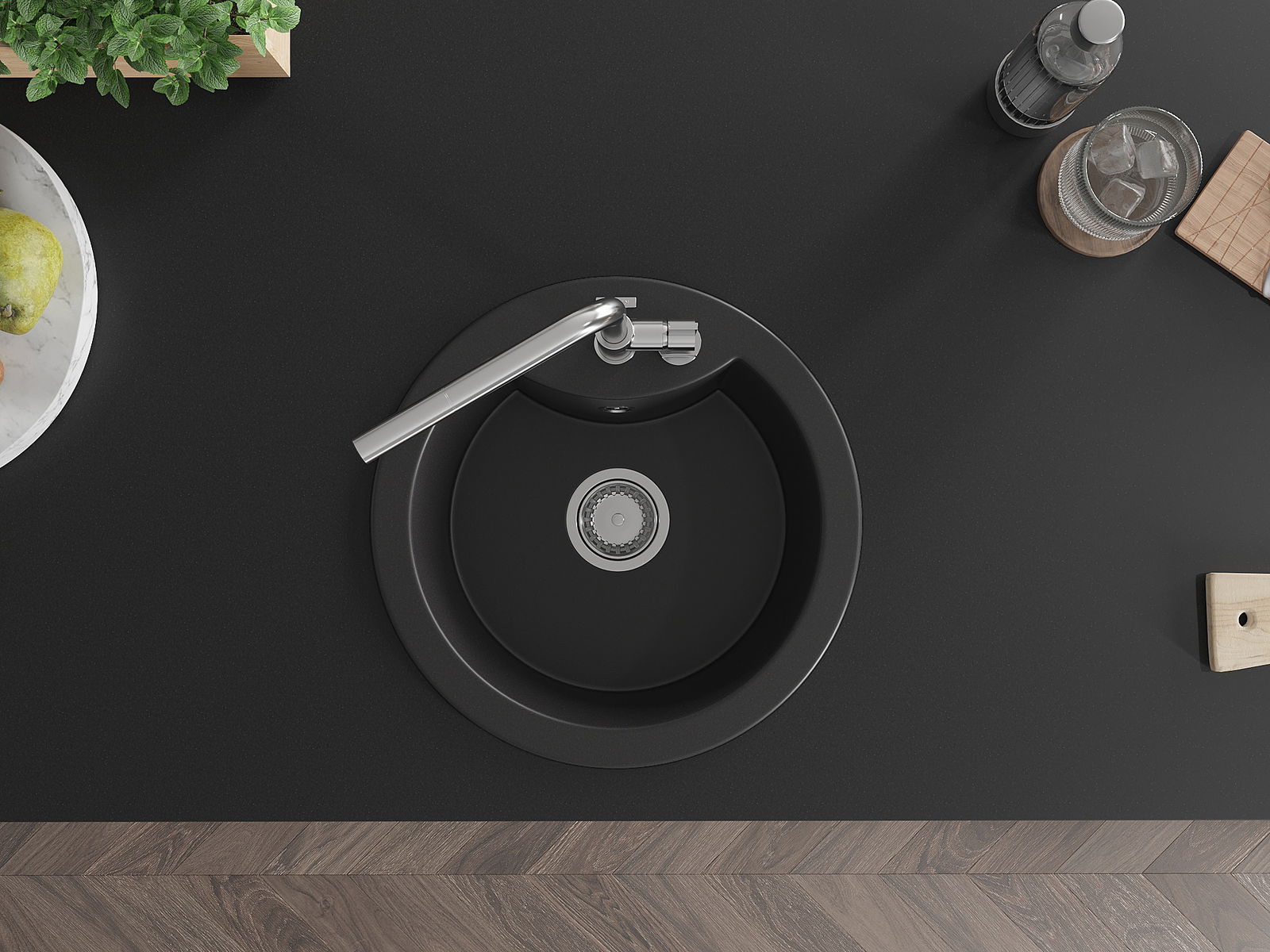 Den Ëmwäschbecken ass aus héichwäertege Granit gemaach. Et stellt eng elegant awer virun allem praktesch Ergänzung fir all Kichen duer, onofhängeg vun hirem Stil. Déi héich Qualitéit an Haltbarkeet vum Granit suergen fir méi järelaang Benotzung.