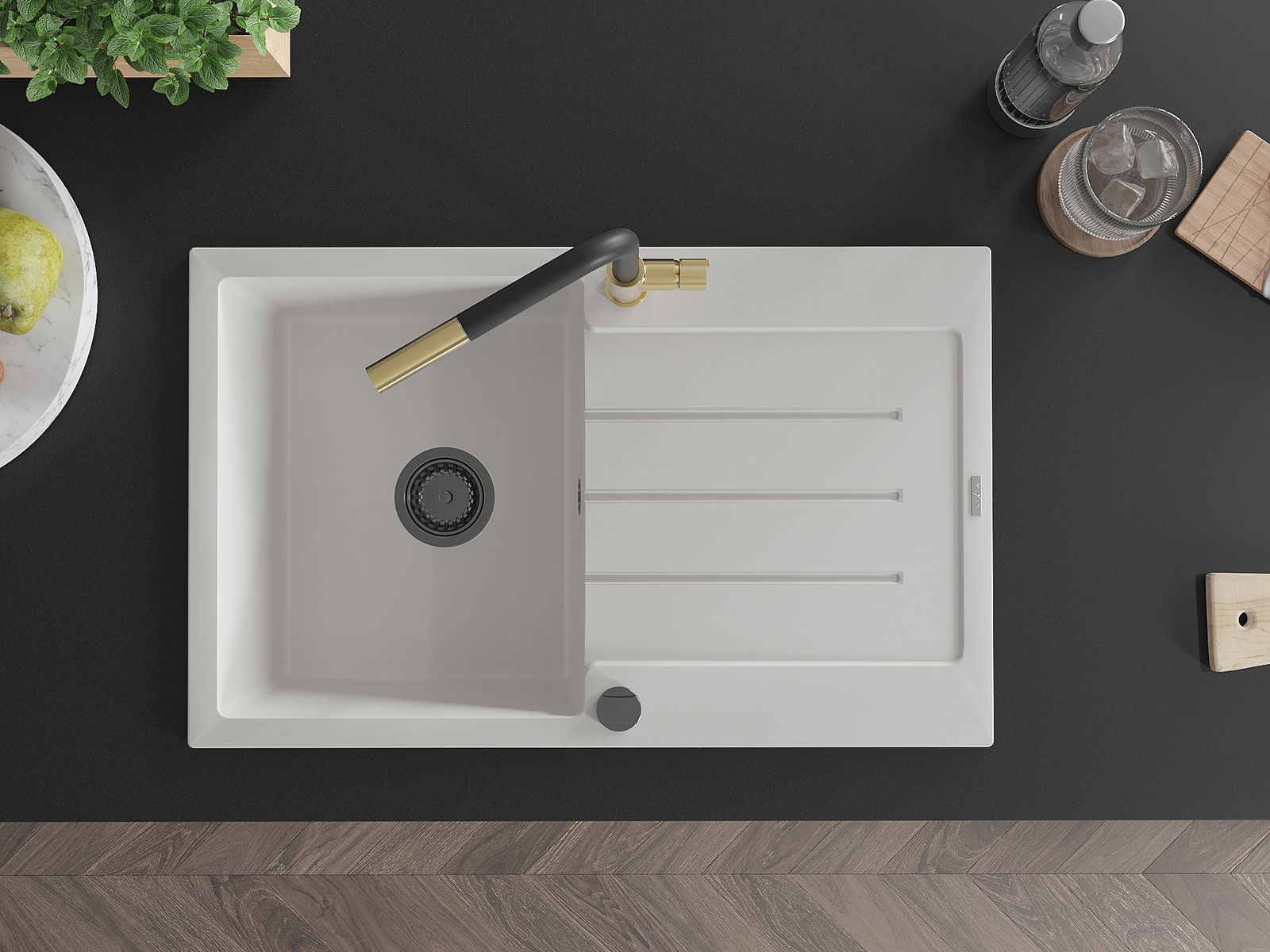 D'Uewerfläch vum Spullstee ass fleck- a verfärbungsresistent, wat se einfach ze botzen mécht an hir Faarf iwwer eng laang Zäit vum Gebrauch behalen léisst. Esthetesch an praktesch Ergänzung fir all Kichen.