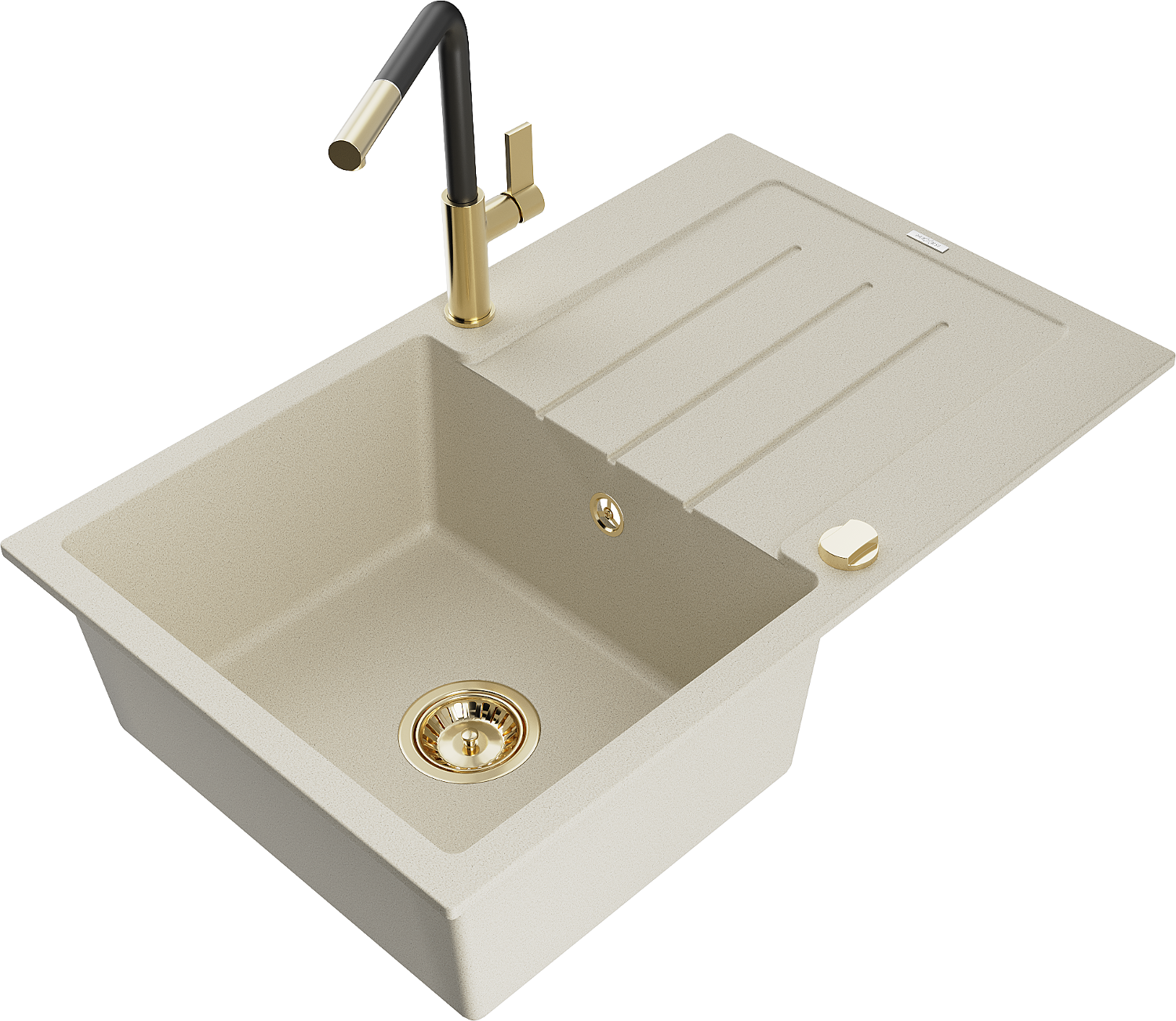 Mexen Bruno Granit-Spullsteen mat enger Schoss an enger Kichenkraan Flora, beige - 6513-69-670401-57-G
