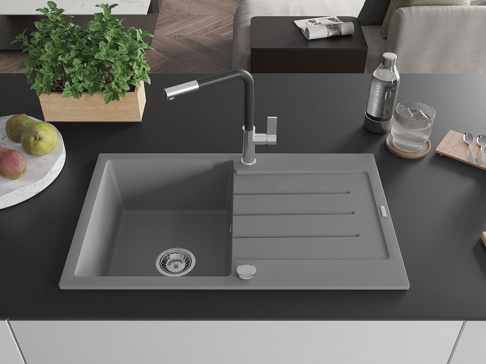 D'Uewerfläch vum Spullstee ass fleck- a verfärbungsresistent, wat se einfach ze botzen mécht an hir Faarf iwwer eng laang Zäit vum Gebrauch behalen léisst. Esthetesch an praktesch Ergänzung fir all Kichen.