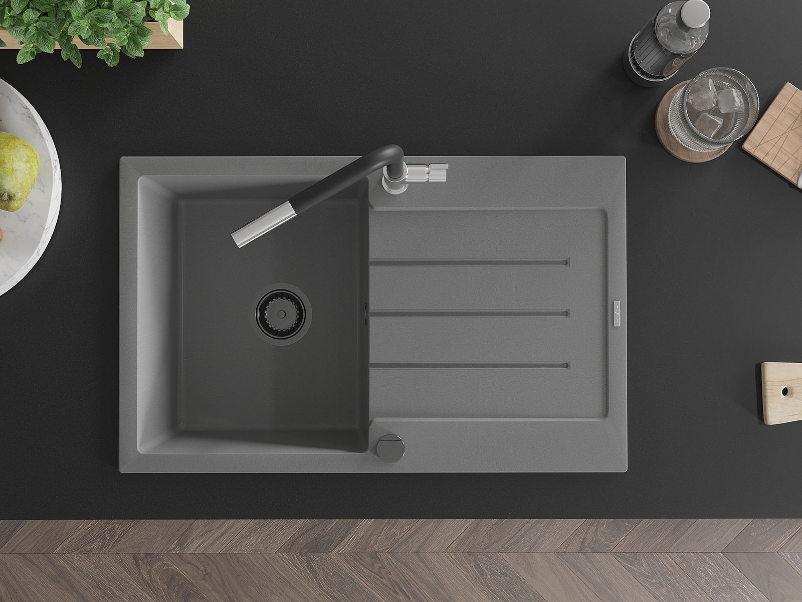 Den Ëmwäschbecken ass aus héichwäertege Granit gemaach. Et stellt eng elegant awer virun allem praktesch Ergänzung fir all Kichen duer, onofhängeg vun hirem Stil. Déi héich Qualitéit an Haltbarkeet vum Granit suergen fir méi järelaang Benotzung.