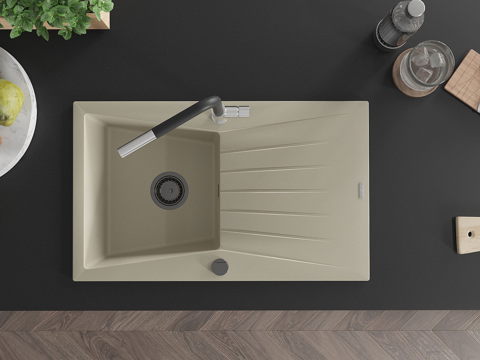 D'Uewerfläch vum Spullstee ass fleck- a verfärbungsresistent, wat se einfach ze botzen mécht an hir Faarf iwwer eng laang Zäit vum Gebrauch behalen léisst. Esthetesch an praktesch Ergänzung fir all Kichen.