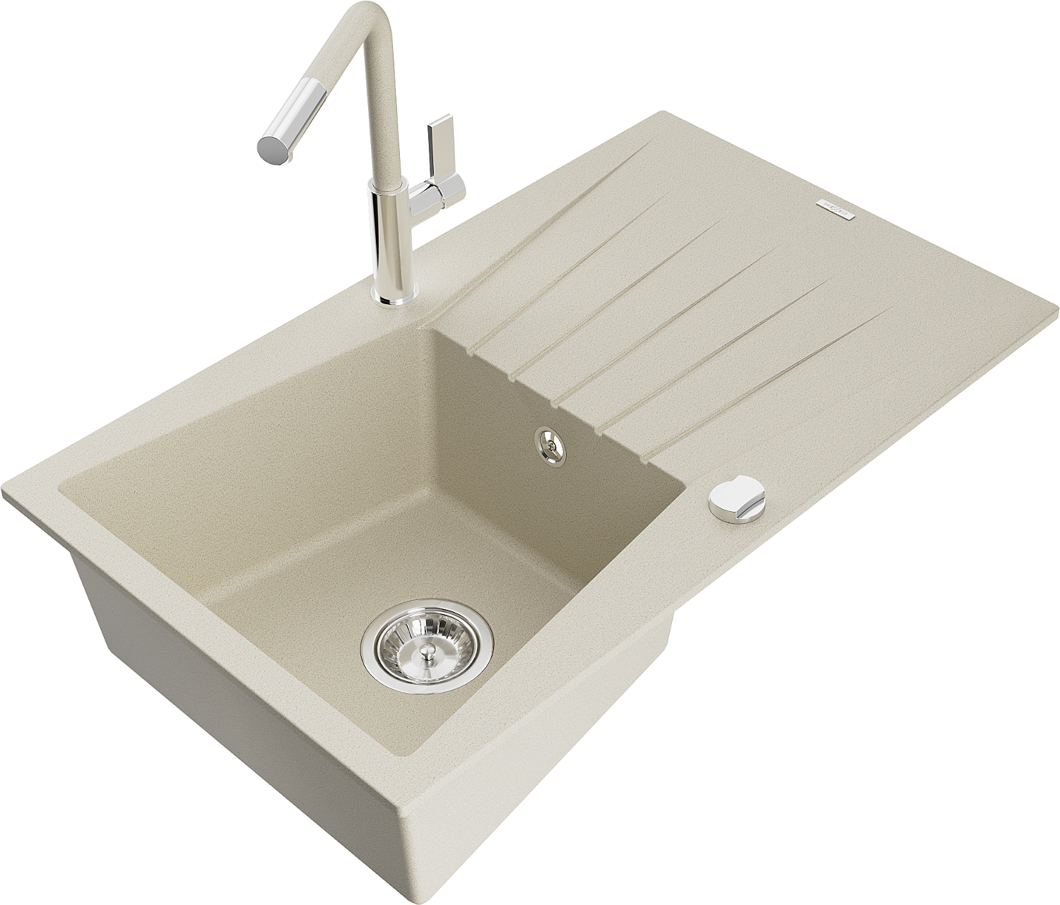 Mexen Cesar Granit Spullsteen 1-Kummer mat Ofloss an Kichenkran Flora, beige - 6514-69-670401-09