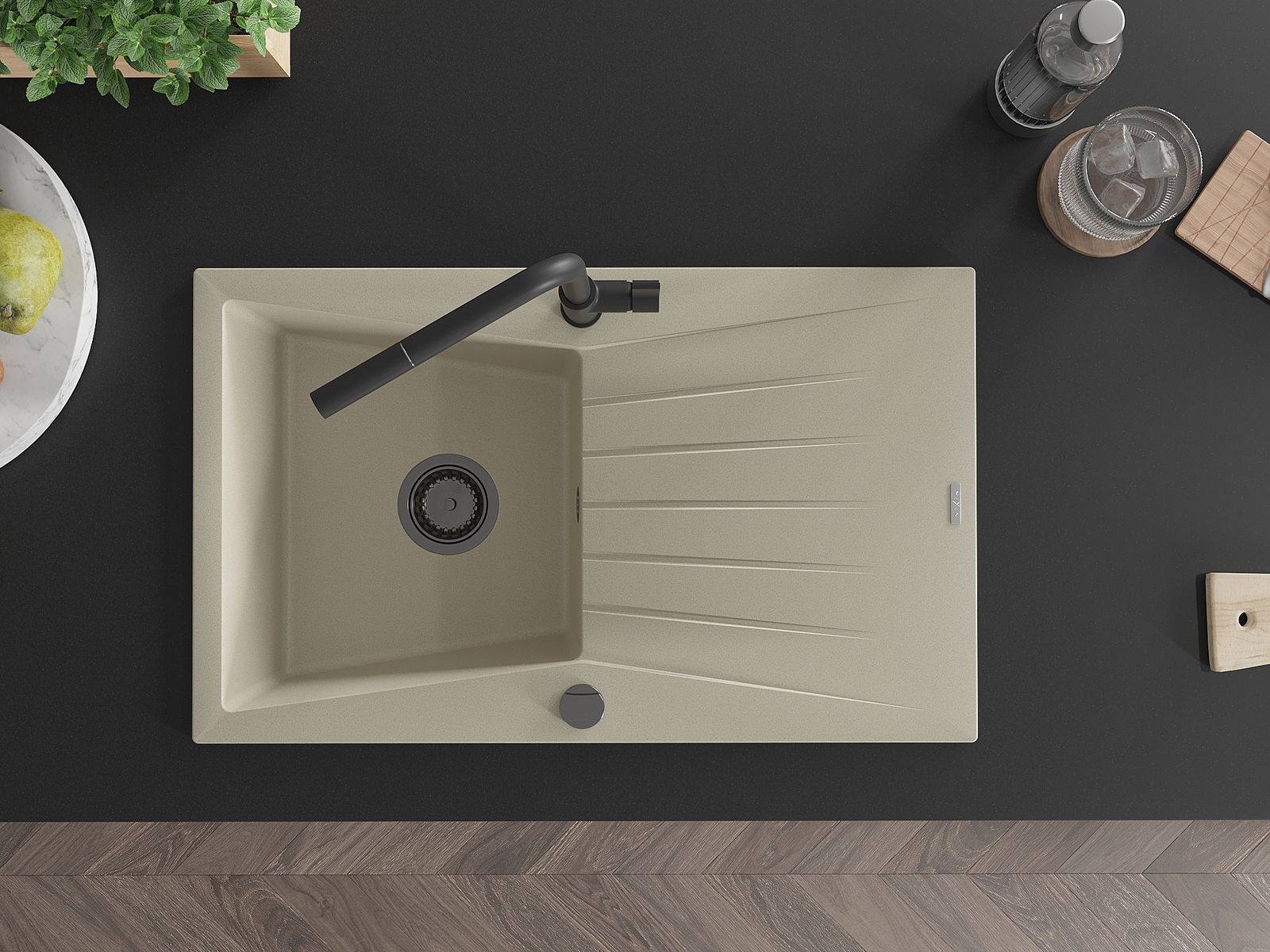 D'Uewerfläch vum Spullstee ass fleck- a verfärbungsresistent, wat se einfach ze botzen mécht an hir Faarf iwwer eng laang Zäit vum Gebrauch behalen léisst. Esthetesch an praktesch Ergänzung fir all Kichen.