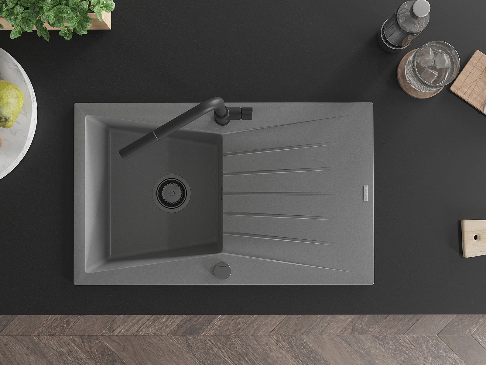Den Ëmwäschbecken ass aus héichwäertege Granit gemaach. Et stellt eng elegant awer virun allem praktesch Ergänzung fir all Kichen duer, onofhängeg vun hirem Stil. Déi héich Qualitéit an Haltbarkeet vum Granit suergen fir méi järelaang Benotzung.