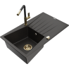 Mexen Cesar Granit-Ëvier mat 1-Kummer mat Drëpsflächen a Kichebatterie Flora, schwaarz - 6514-77-670401-57-G