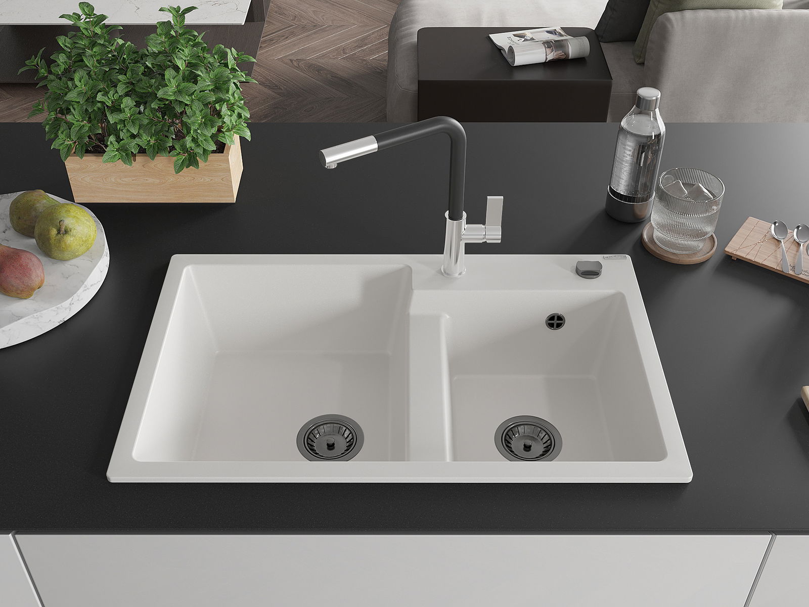 D'Uewerfläch vum Spullstee ass fleck- a verfärbungsresistent, wat se einfach ze botzen mécht an hir Faarf iwwer eng laang Zäit vum Gebrauch behalen léisst. Esthetesch an praktesch Ergänzung fir all Kichen.