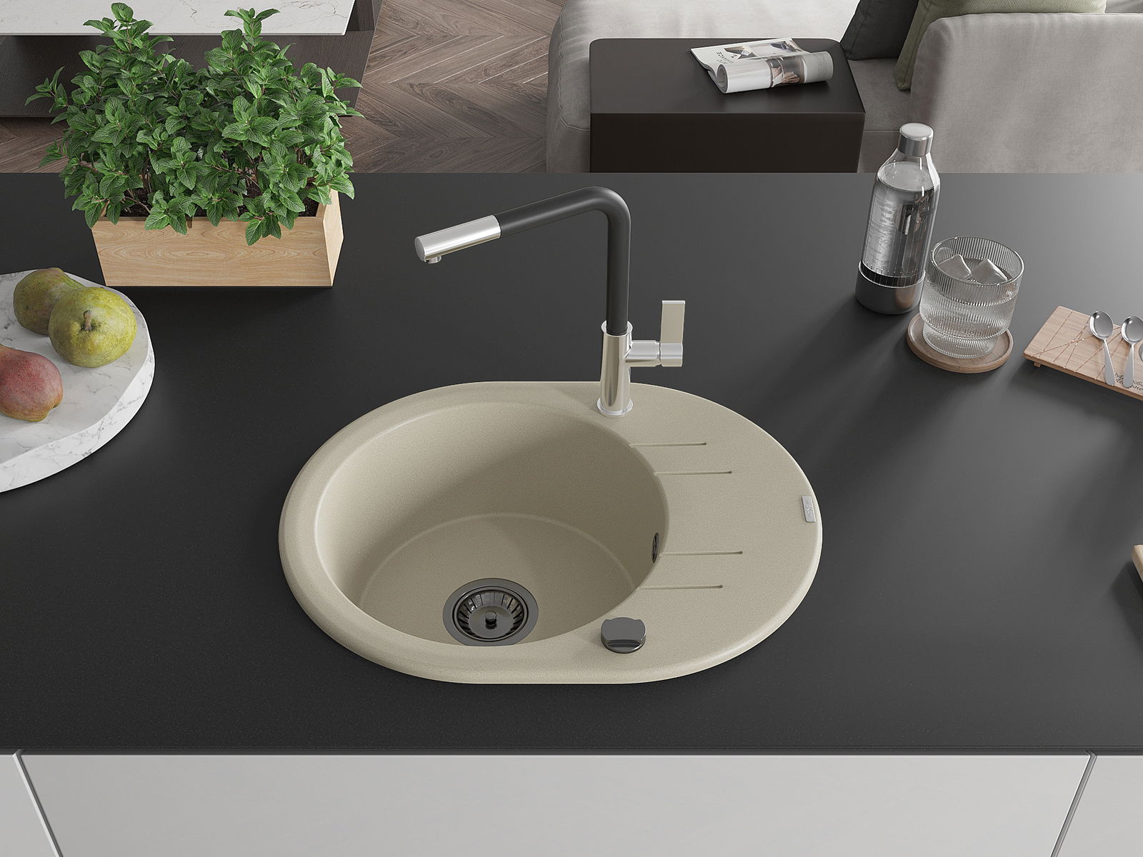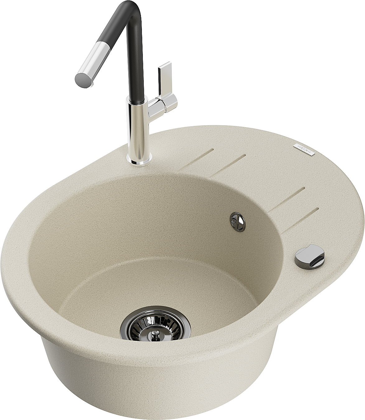 Den Ëmwäschbecken ass aus héichwäertege Granit gemaach. Et stellt eng elegant awer virun allem praktesch Ergänzung fir all Kichen duer, onofhängeg vun hirem Stil. Déi héich Qualitéit an Haltbarkeet vum Granit suergen fir méi järelaang Benotzung.