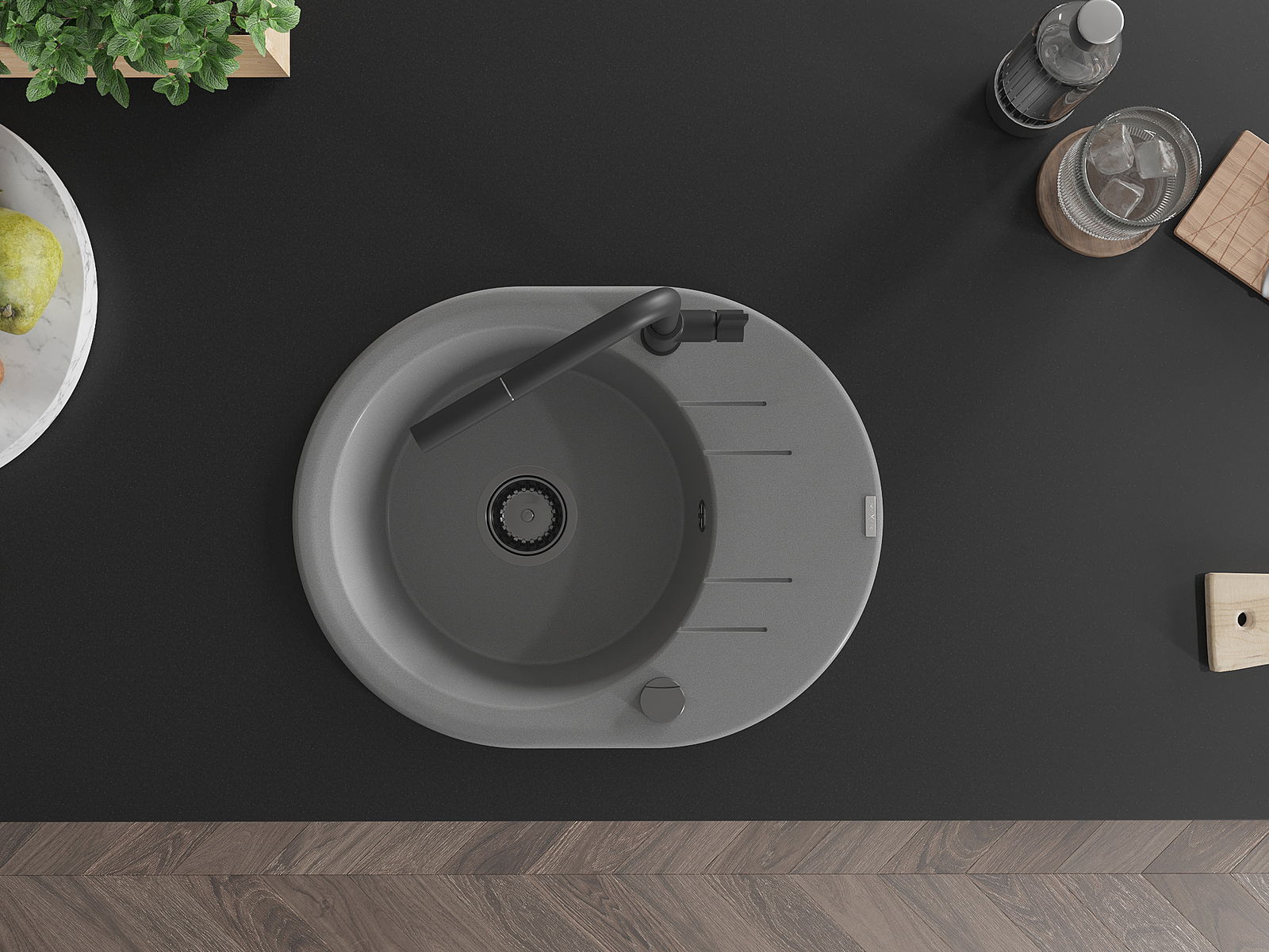 Den Ëmwäschbecken ass aus héichwäertege Granit gemaach. Et stellt eng elegant awer virun allem praktesch Ergänzung fir all Kichen duer, onofhängeg vun hirem Stil. Déi héich Qualitéit an Haltbarkeet vum Granit suergen fir méi järelaang Benotzung.