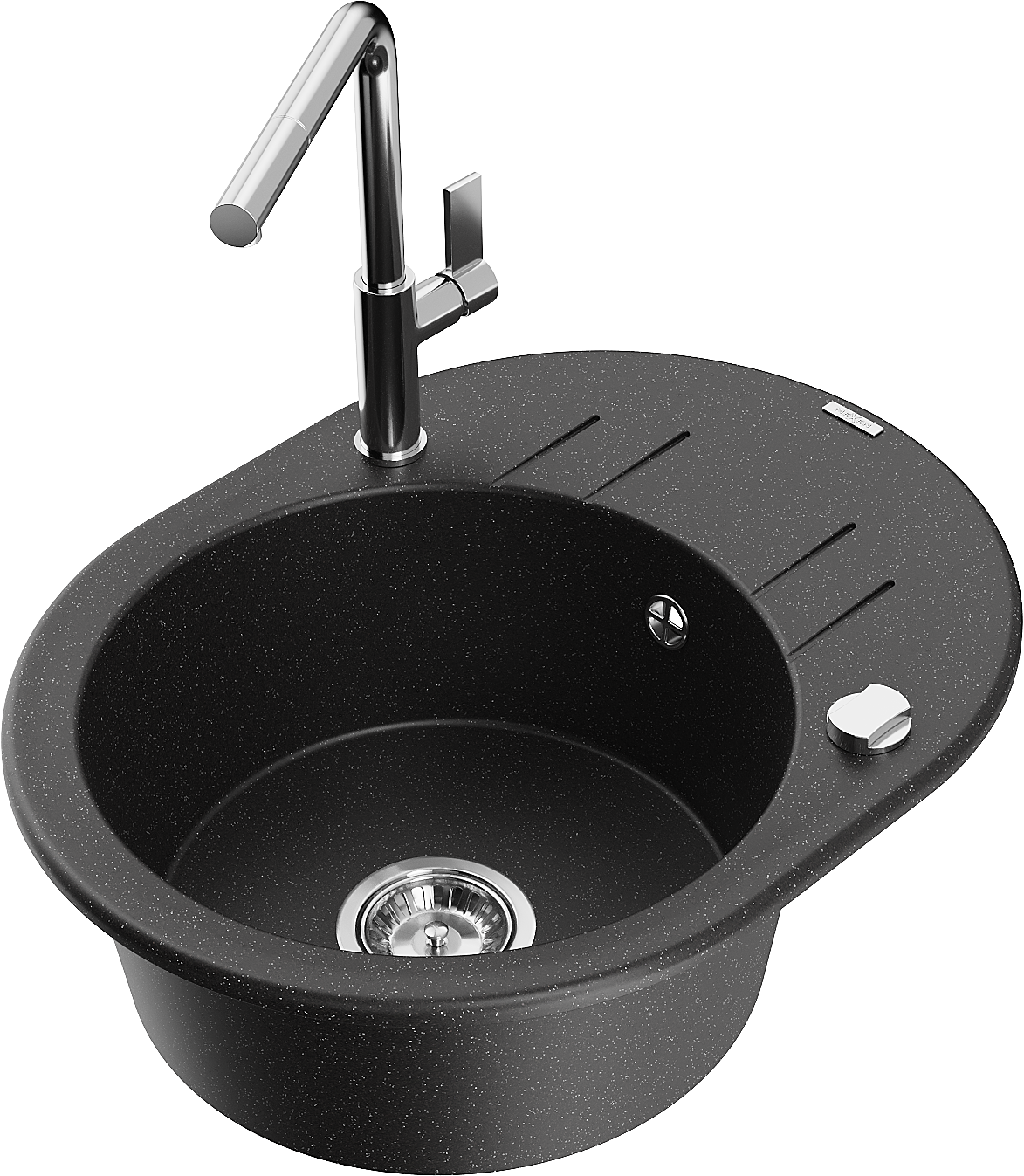 Den Spullsteen huet 2 virberäitet Lächer mat engem Duerchmiesser vun 35 mm, déi selbststänneg ausgeschloen kënne ginn. Se kënne fir d'Montage vun engem Flëssegkeetsspender benotzt ginn, deen d'Präsenz vu Plastikfläschen an der Kichen eliminéiert an hir en elegant Finish gëtt.