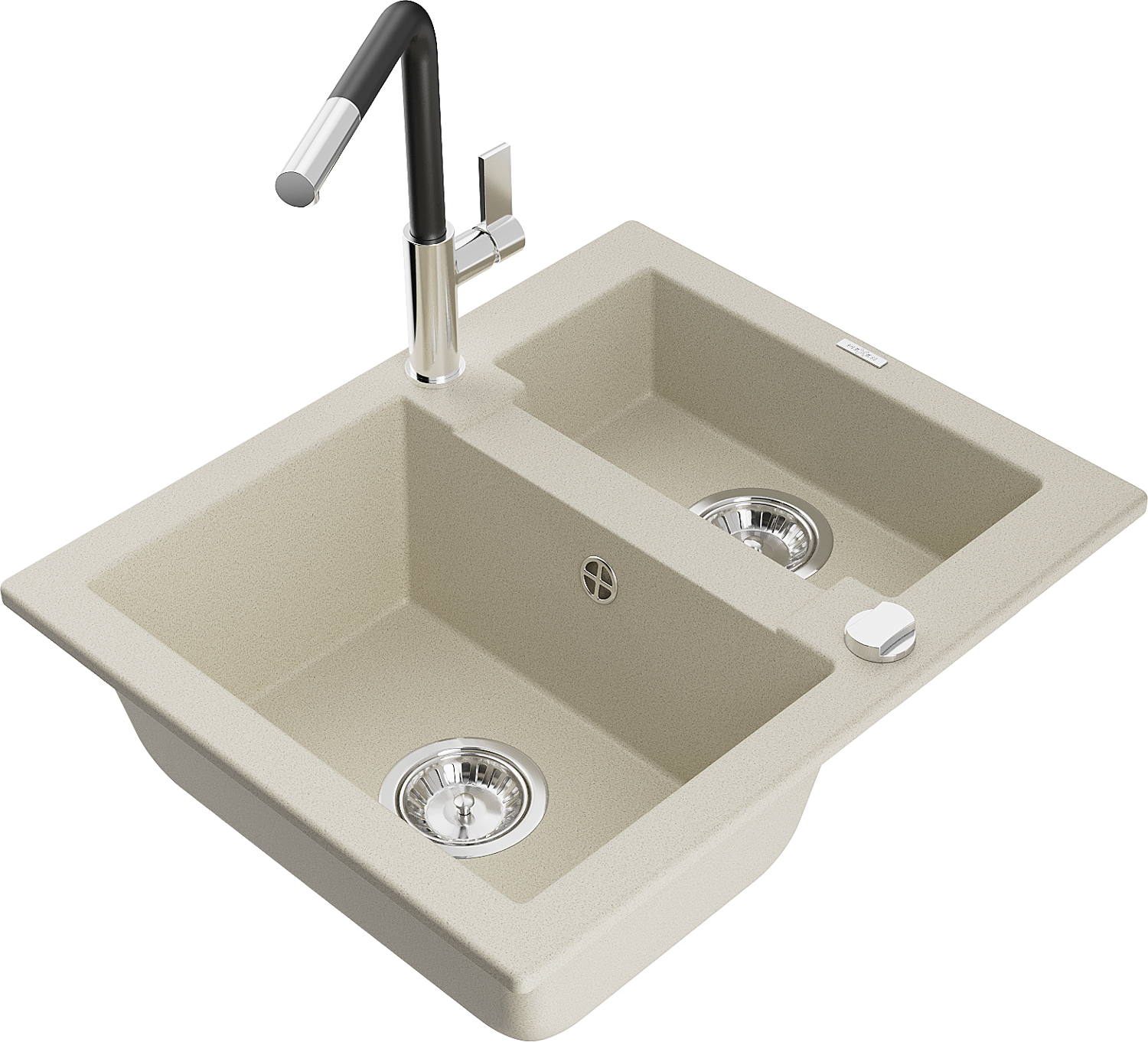 Den Ëmwäschbecken ass aus héichwäertege Granit gemaach. Et stellt eng elegant awer virun allem praktesch Ergänzung fir all Kichen duer, onofhängeg vun hirem Stil. Déi héich Qualitéit an Haltbarkeet vum Granit suergen fir méi järelaang Benotzung.