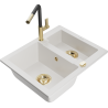 Den Ëmwäschbecken ass aus héichwäertege Granit gemaach. Et stellt eng elegant awer virun allem praktesch Ergänzung fir all Kichen duer, onofhängeg vun hirem Stil. Déi héich Qualitéit an Haltbarkeet vum Granit suergen fir méi järelaang Benotzung.