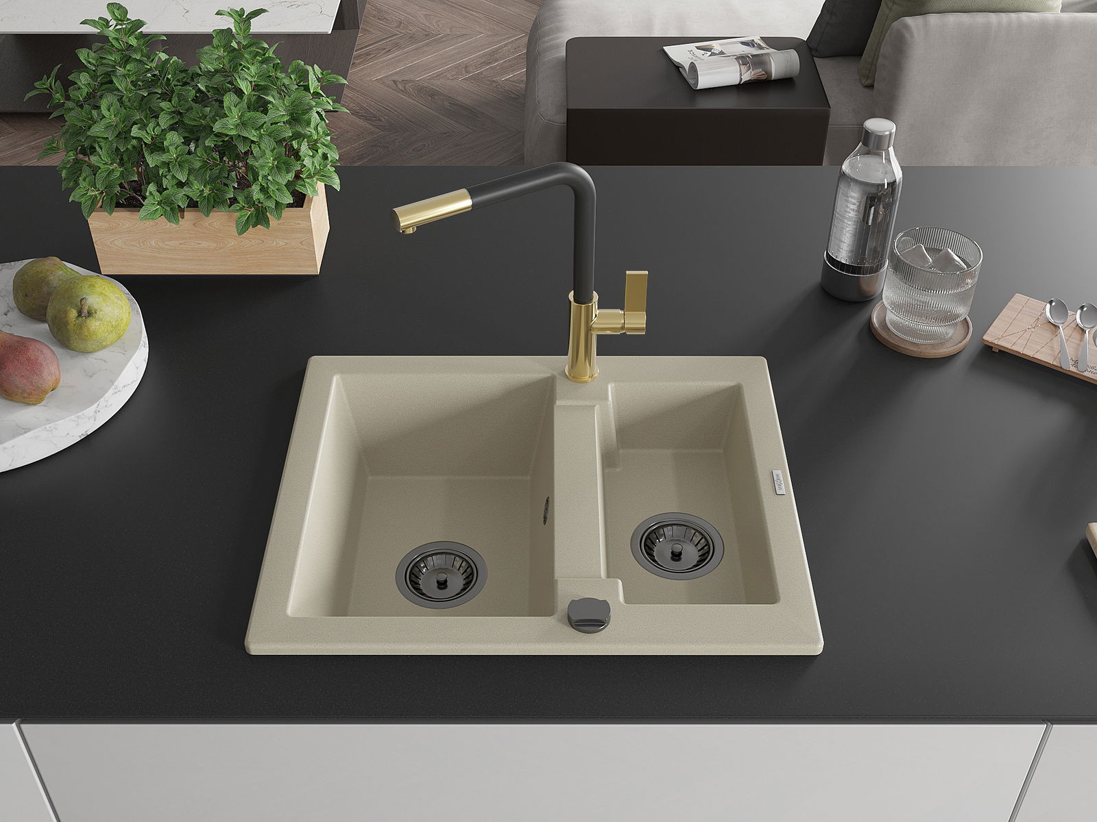 Den Ëmwäschbecken ass aus héichwäertege Granit gemaach. Et stellt eng elegant awer virun allem praktesch Ergänzung fir all Kichen duer, onofhängeg vun hirem Stil. Déi héich Qualitéit an Haltbarkeet vum Granit suergen fir méi järelaang Benotzung.