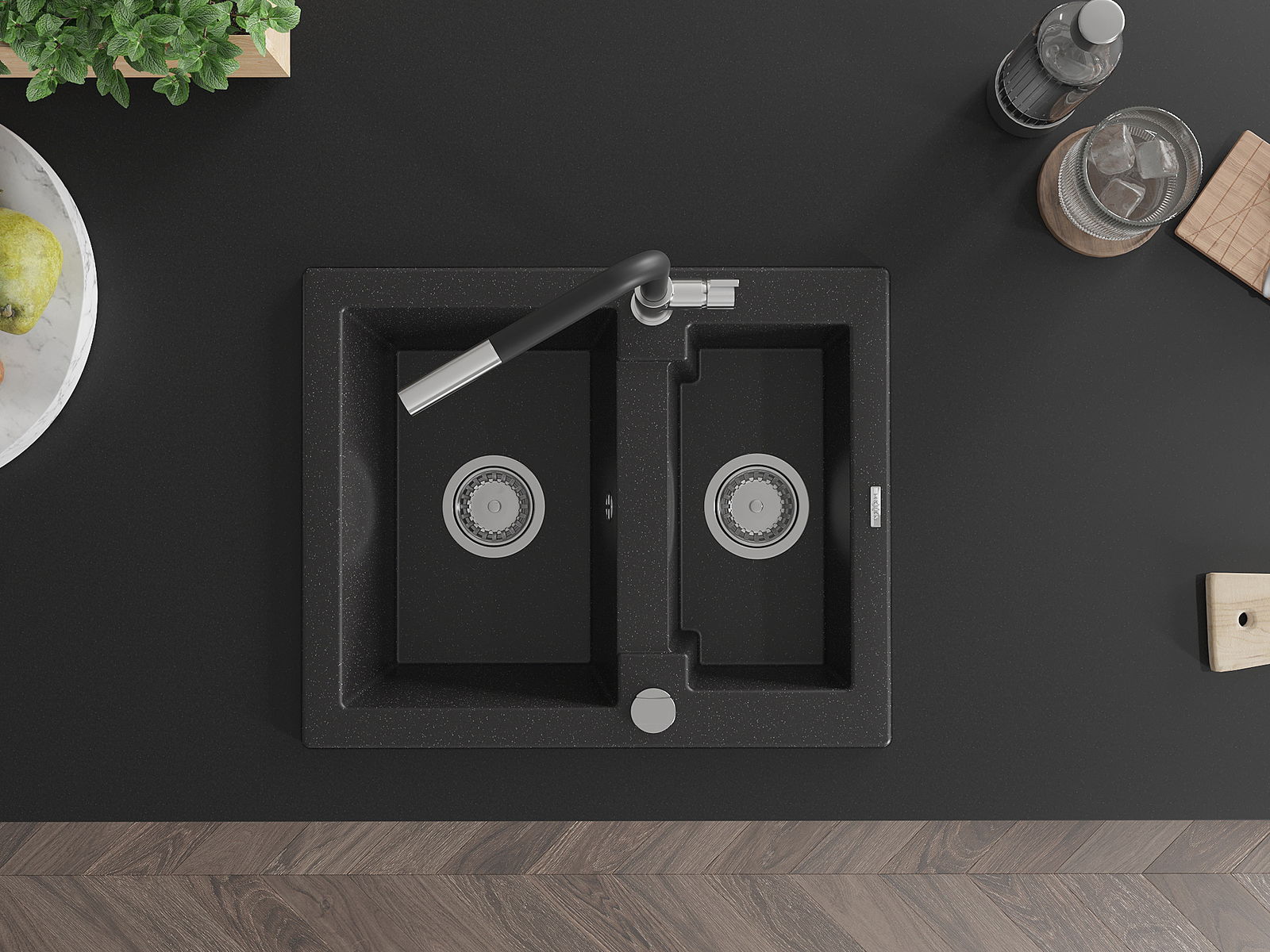 Den Ëmwäschbecken ass aus héichwäertege Granit gemaach. Et stellt eng elegant awer virun allem praktesch Ergänzung fir all Kichen duer, onofhängeg vun hirem Stil. Déi héich Qualitéit an Haltbarkeet vum Granit suergen fir méi järelaang Benotzung.