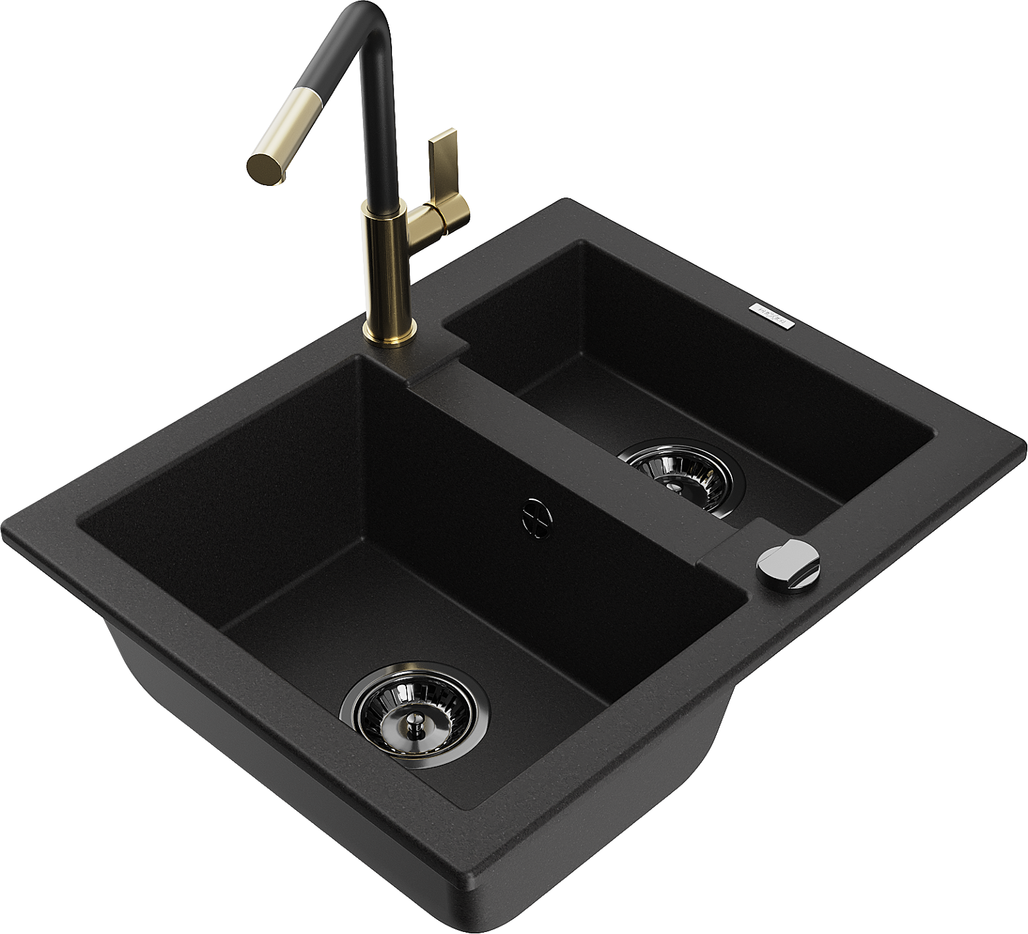 Mexen Carlos Granit-Spullsteen mat 1.5 Box mat Kichbatterie Flora, schwaarz - 6518-77-670401-57-B